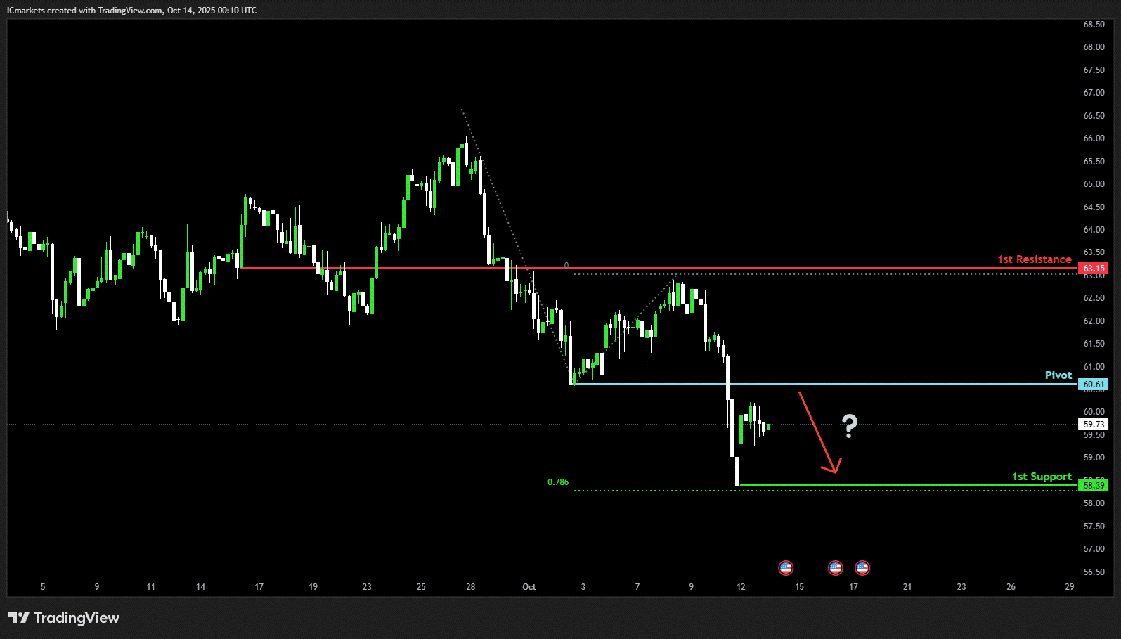 The price could see a short-term pullback toward the pivot before continuing its bearish move down toward the 1st support.