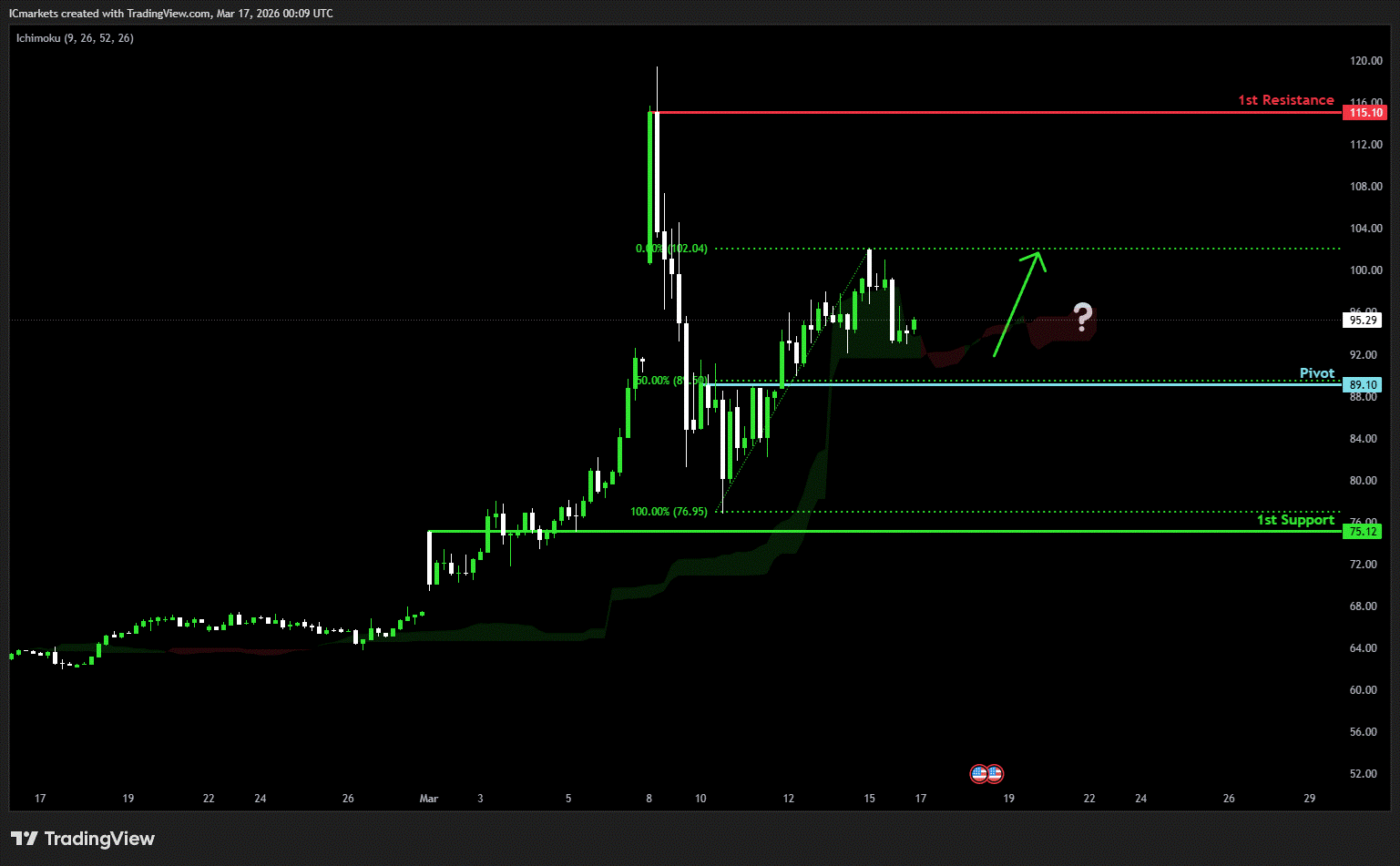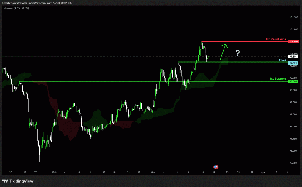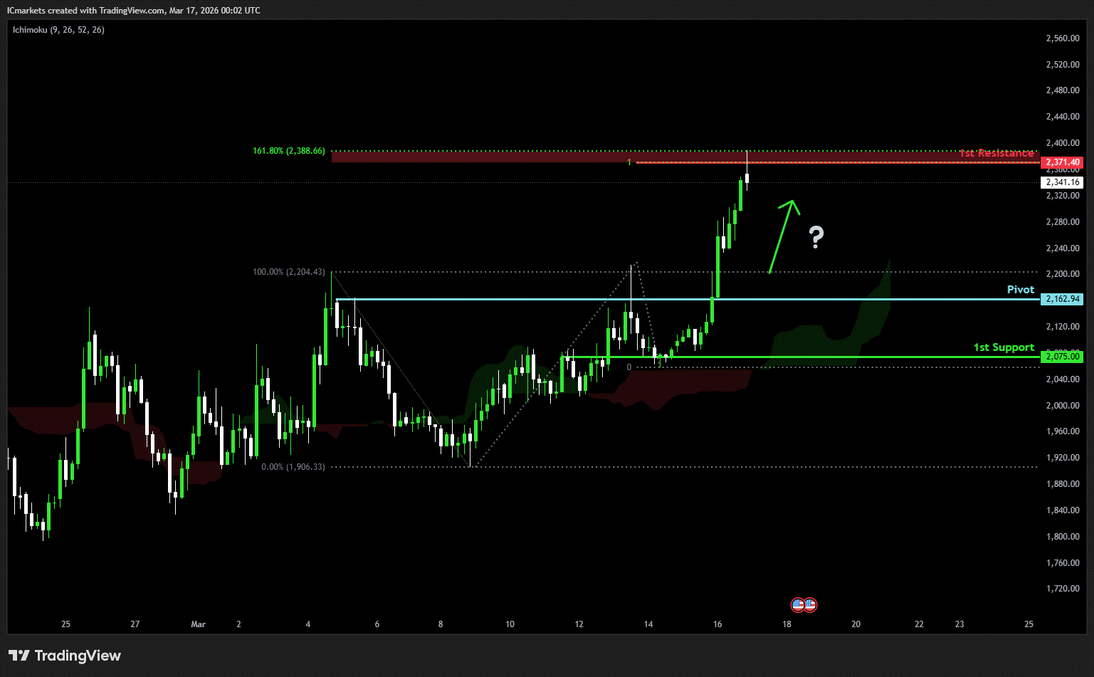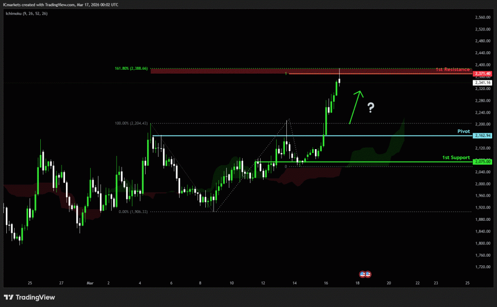 The price could see a short-term pullback toward the pivot before rising again toward the 1st resistance.