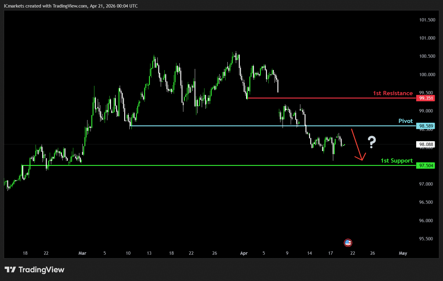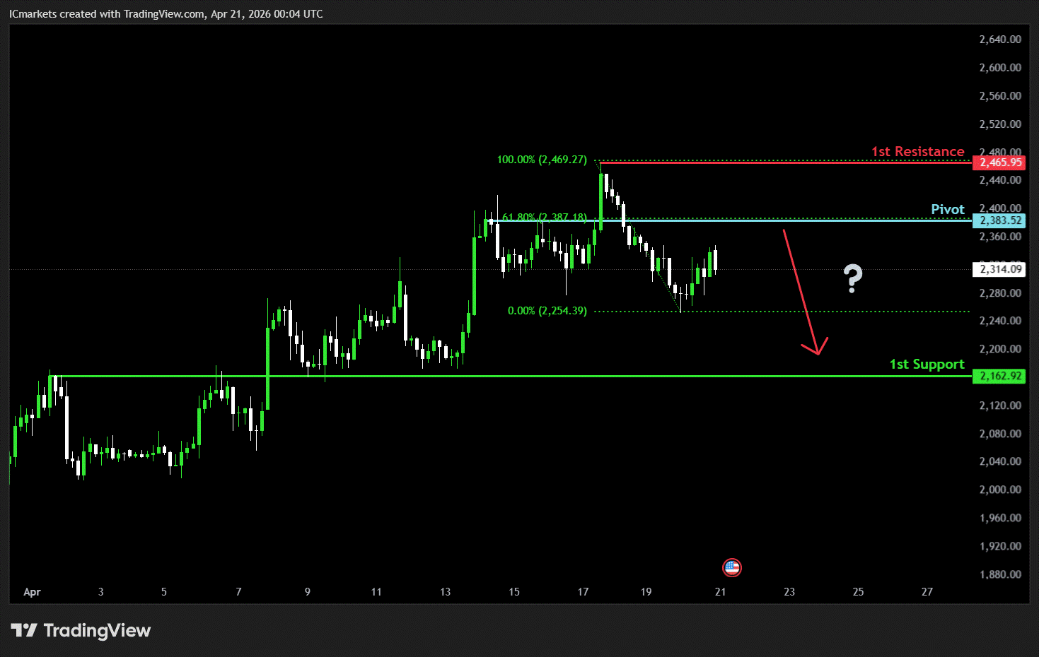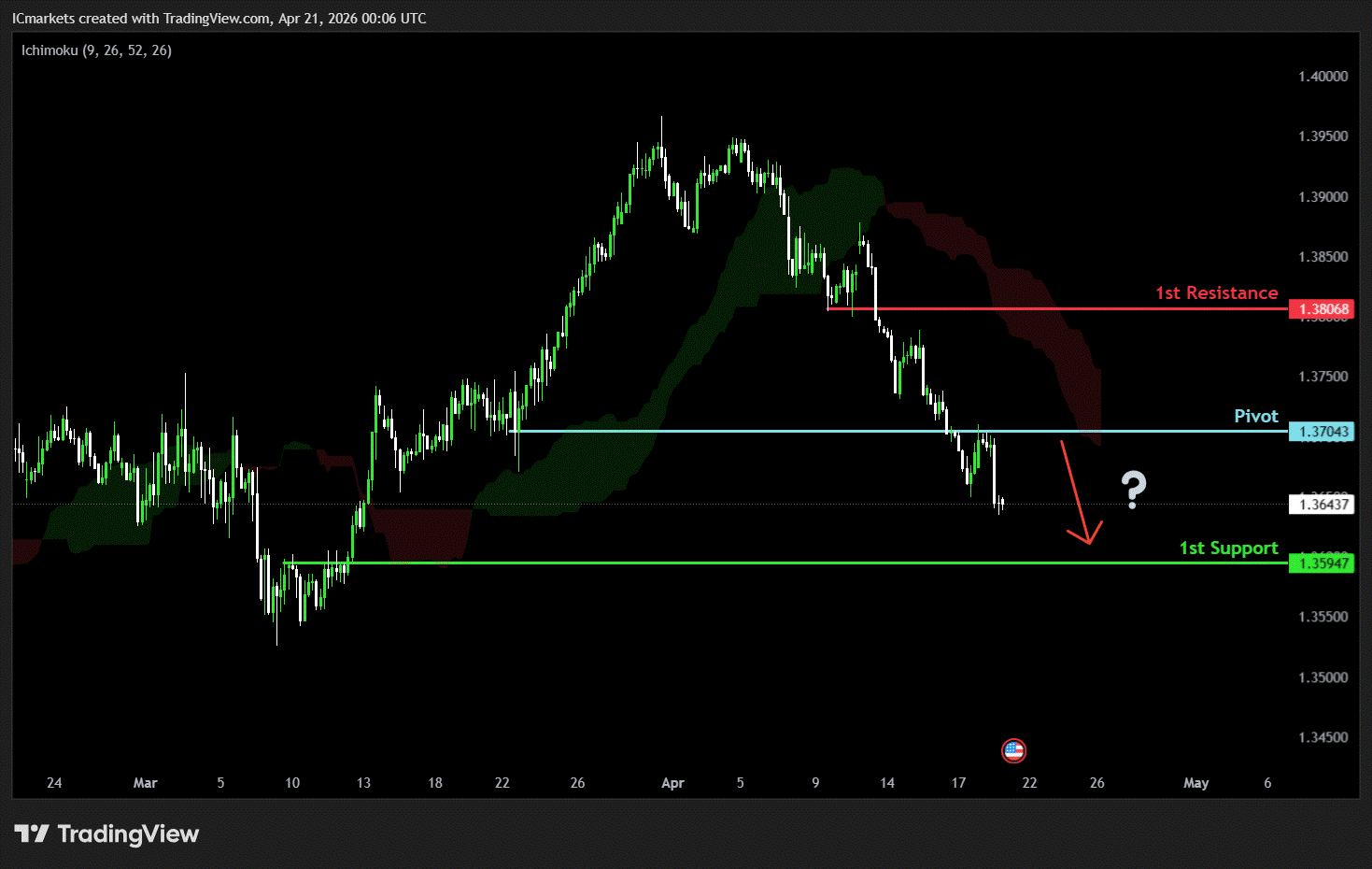 The price could see a short-term pullback toward the pivot before continuing its bearish move down toward the 1st support.