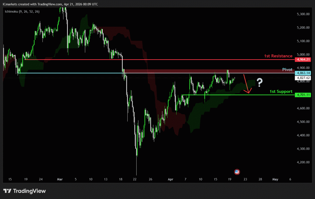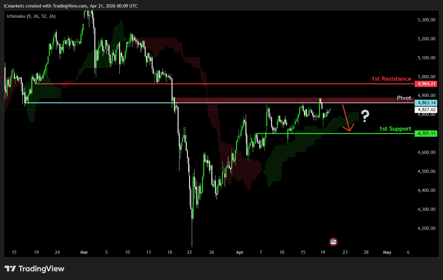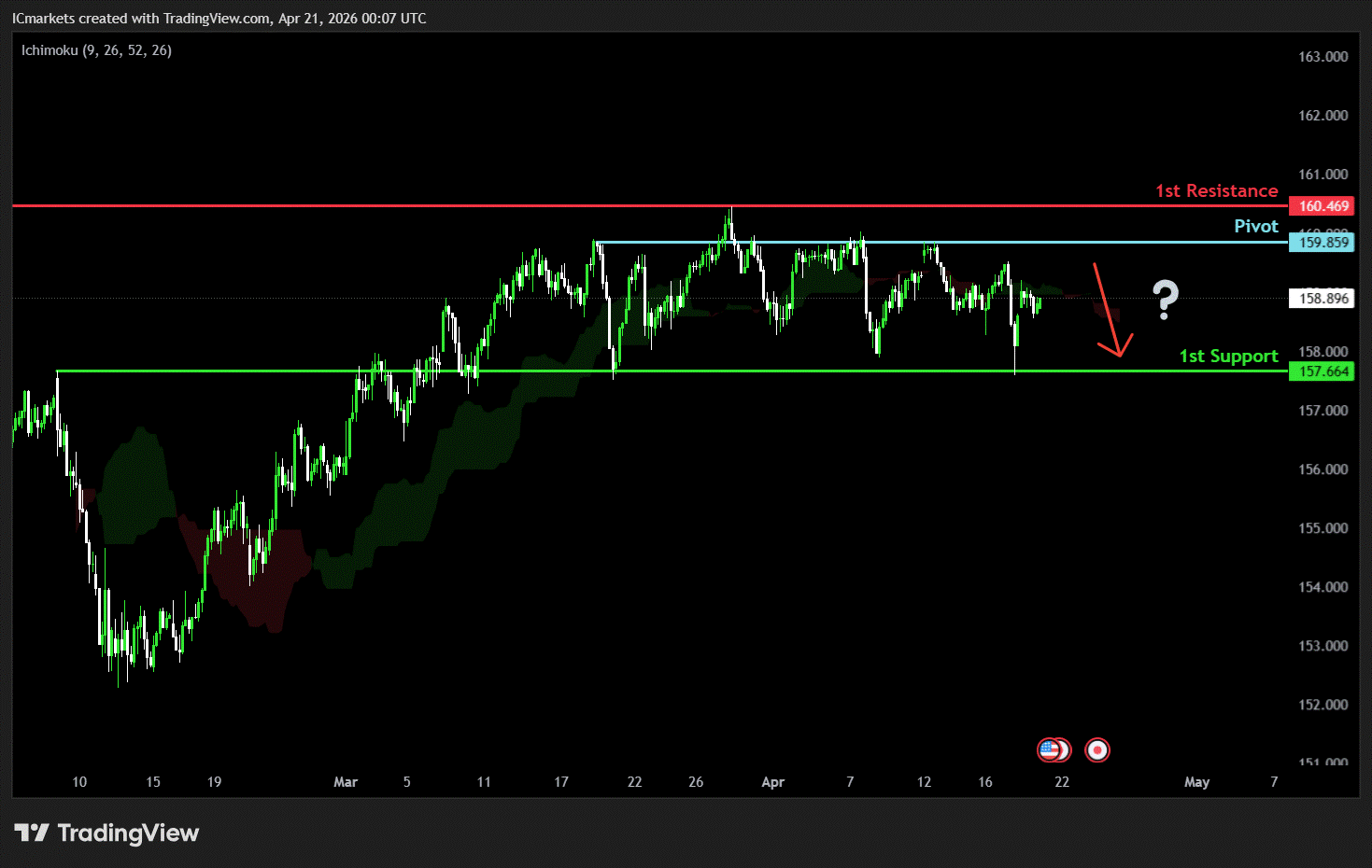 The price could see a short-term pullback toward the pivot before continuing its bearish move down toward the 1st support.