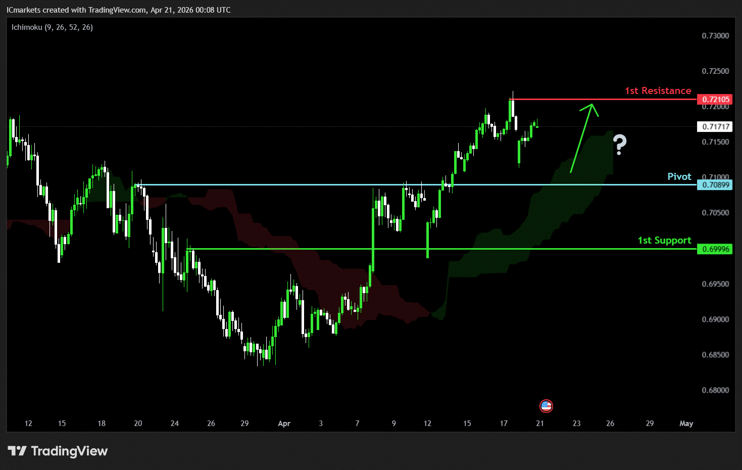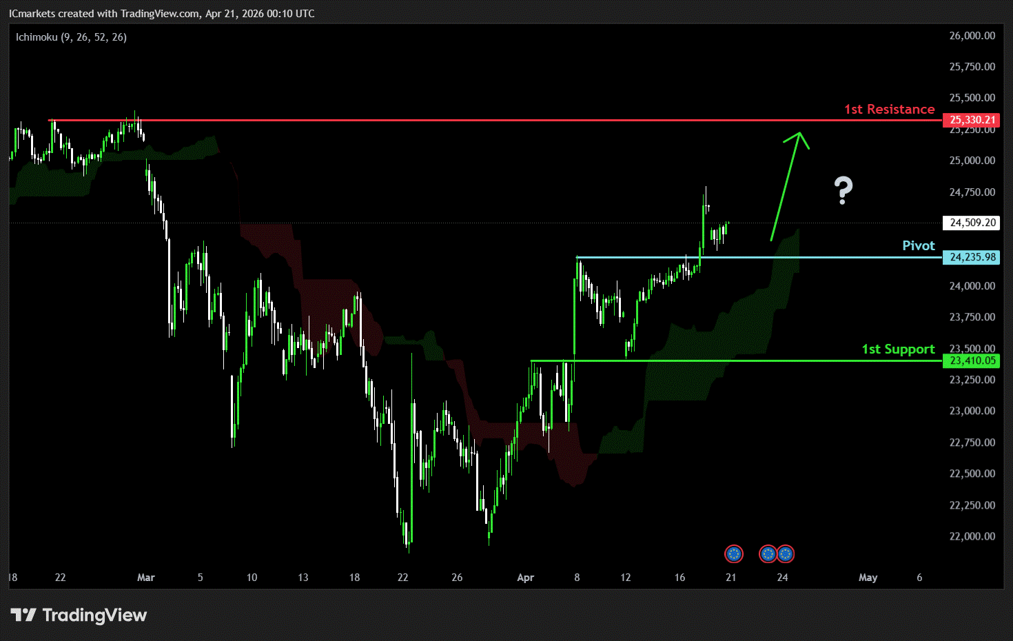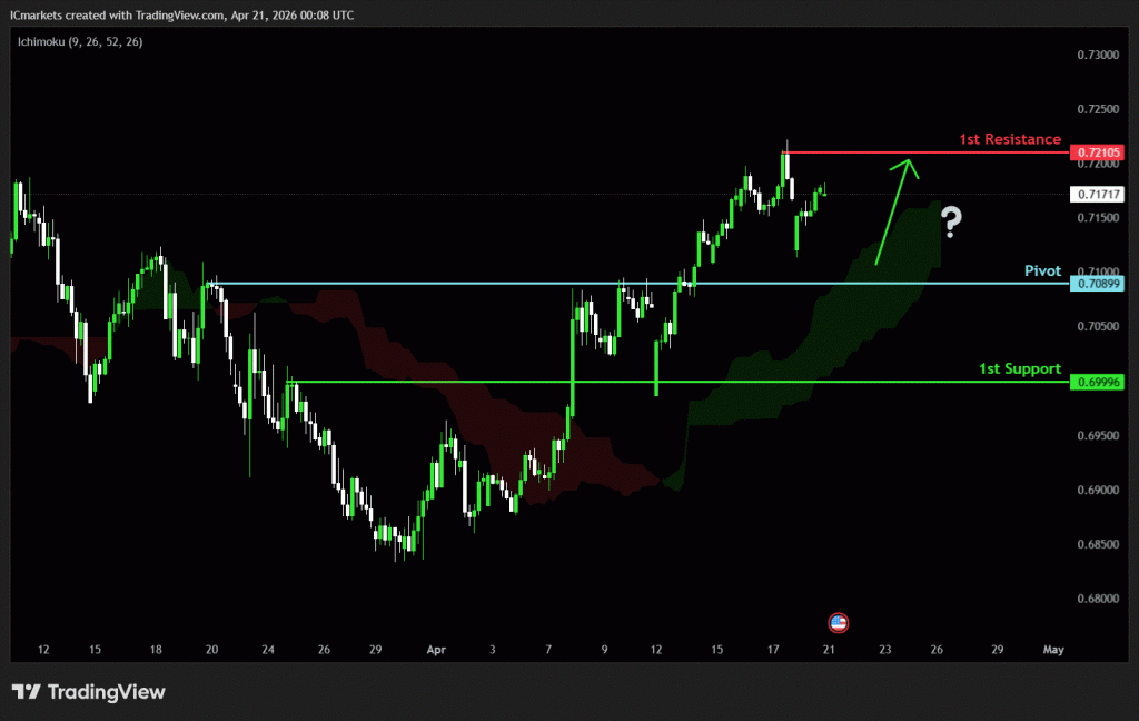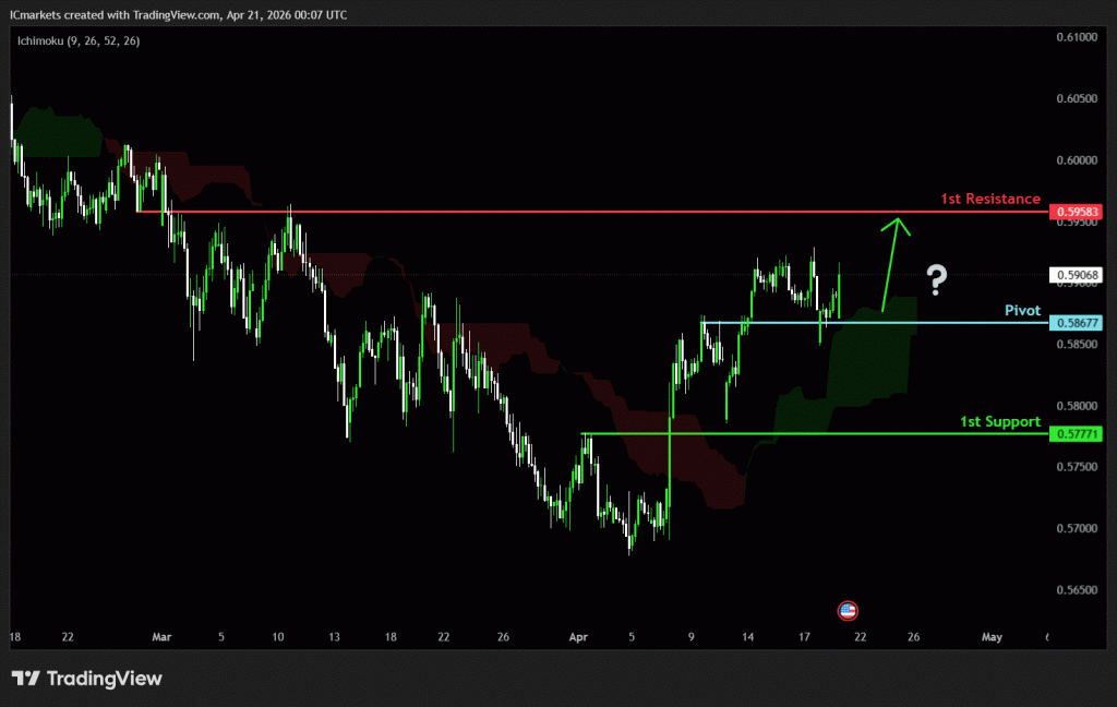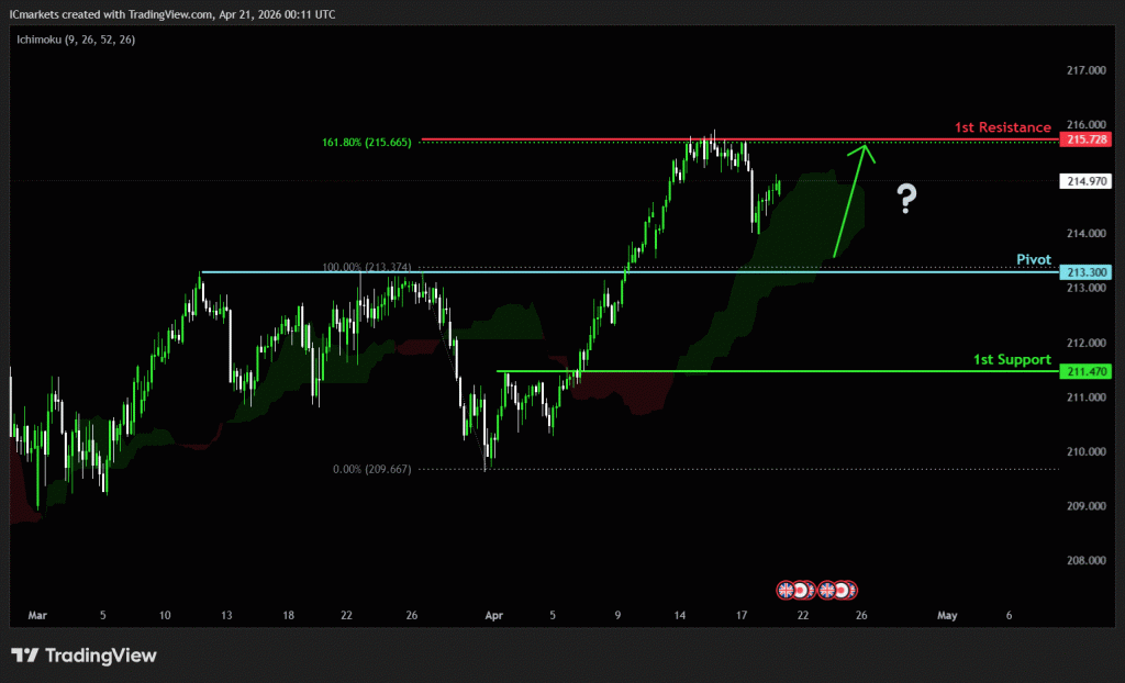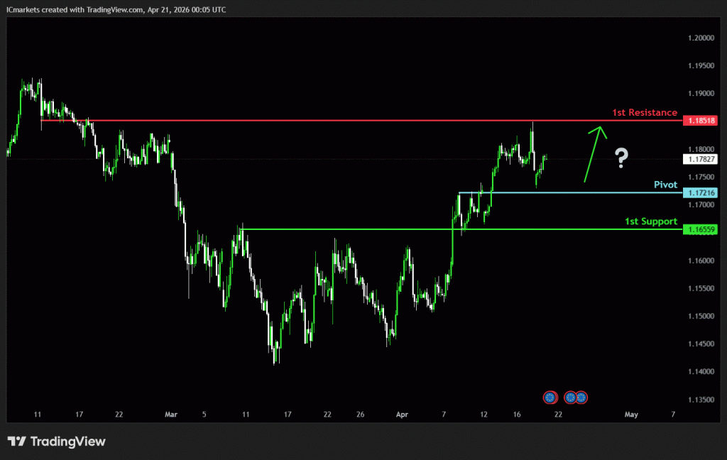 The price could see a short-term pullback toward the pivot before rising again toward the 1st resistance.