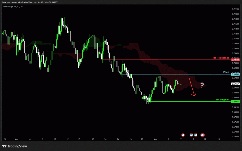 The price has already reacted off the pivot and may continue its bearish move toward the 1st support.
