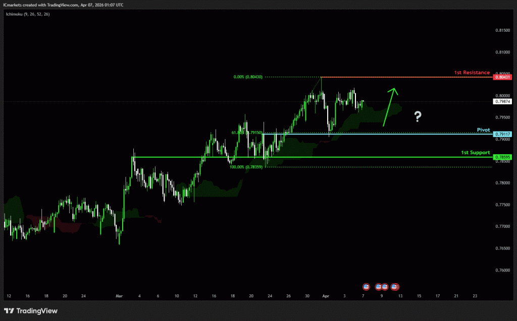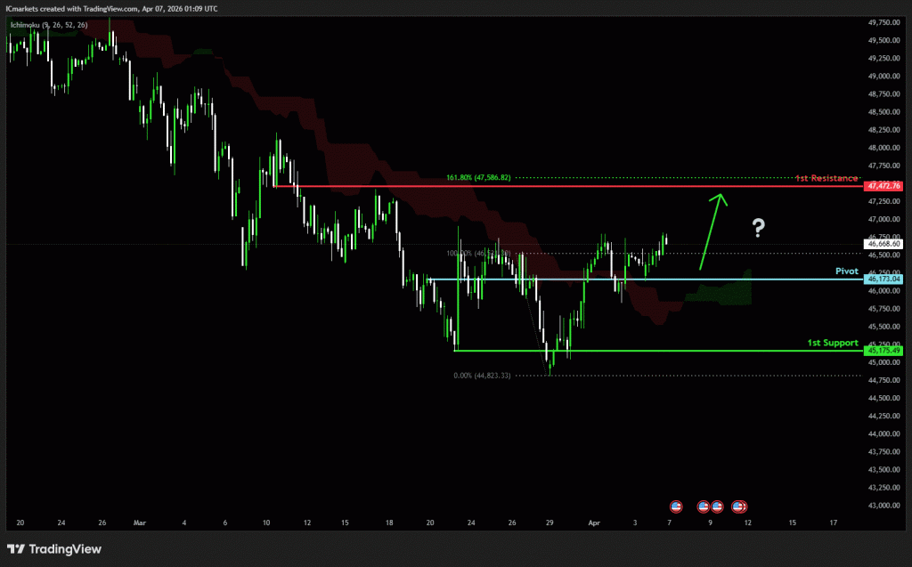 The price could see a short-term pullback toward the pivot before rising again toward the 1st resistance.