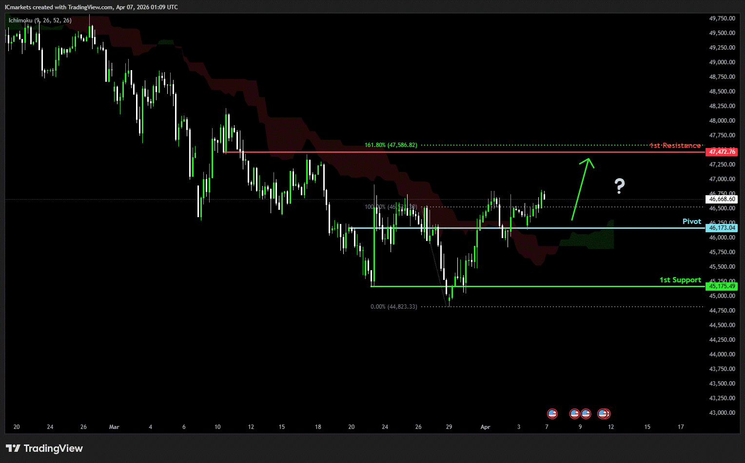 1st support: 45,175.49