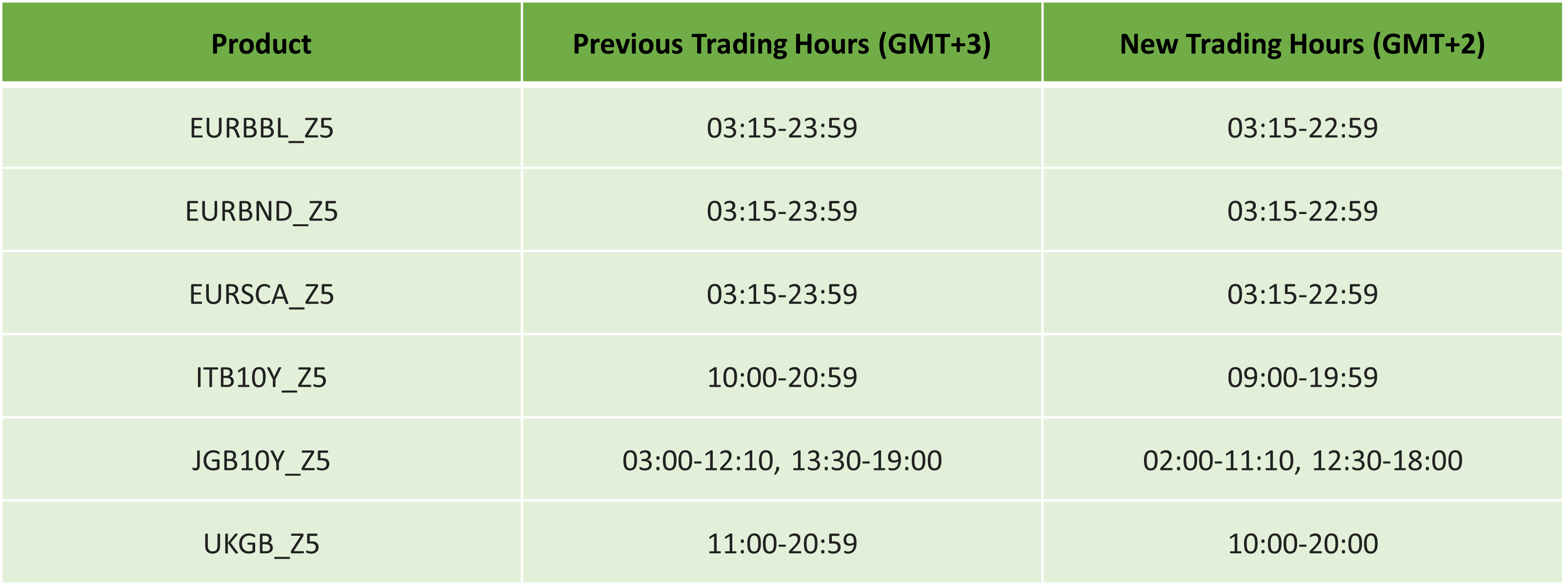 While trading, most products will remain unaffected; however, there will be a change in the trading hours of some products.