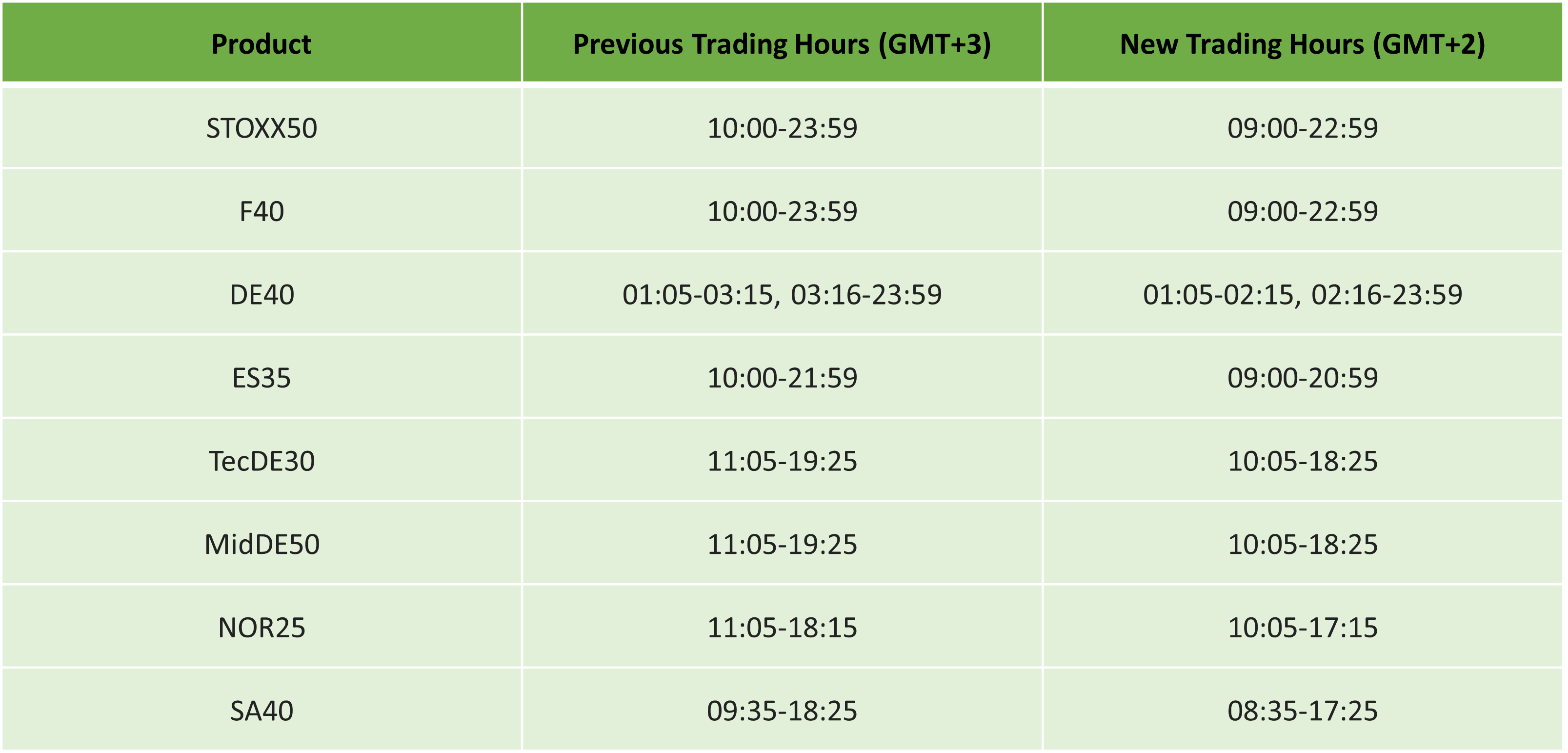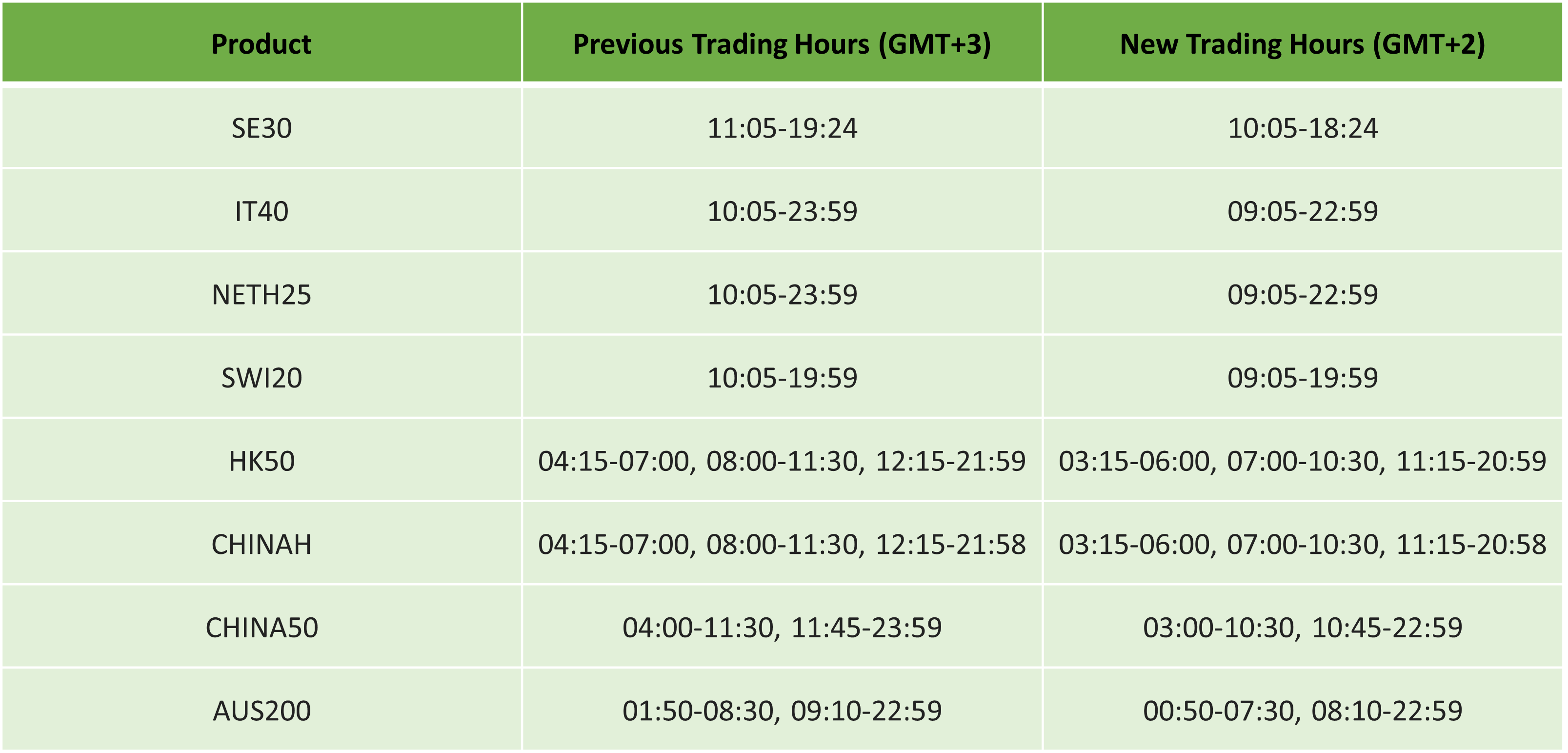 As part of our commitment to providing the best trading experience to our clients, we want to inform you there will be an adjustment in the trading schedule due to the US exiting Daylight Saving on Sunday, 02 November 2025.