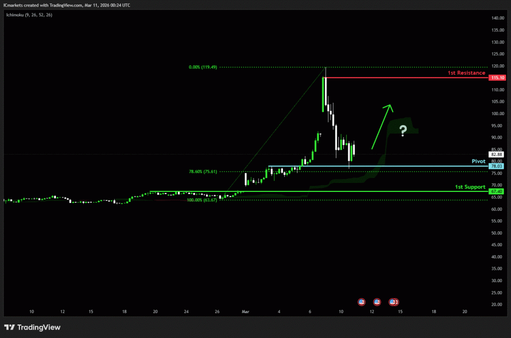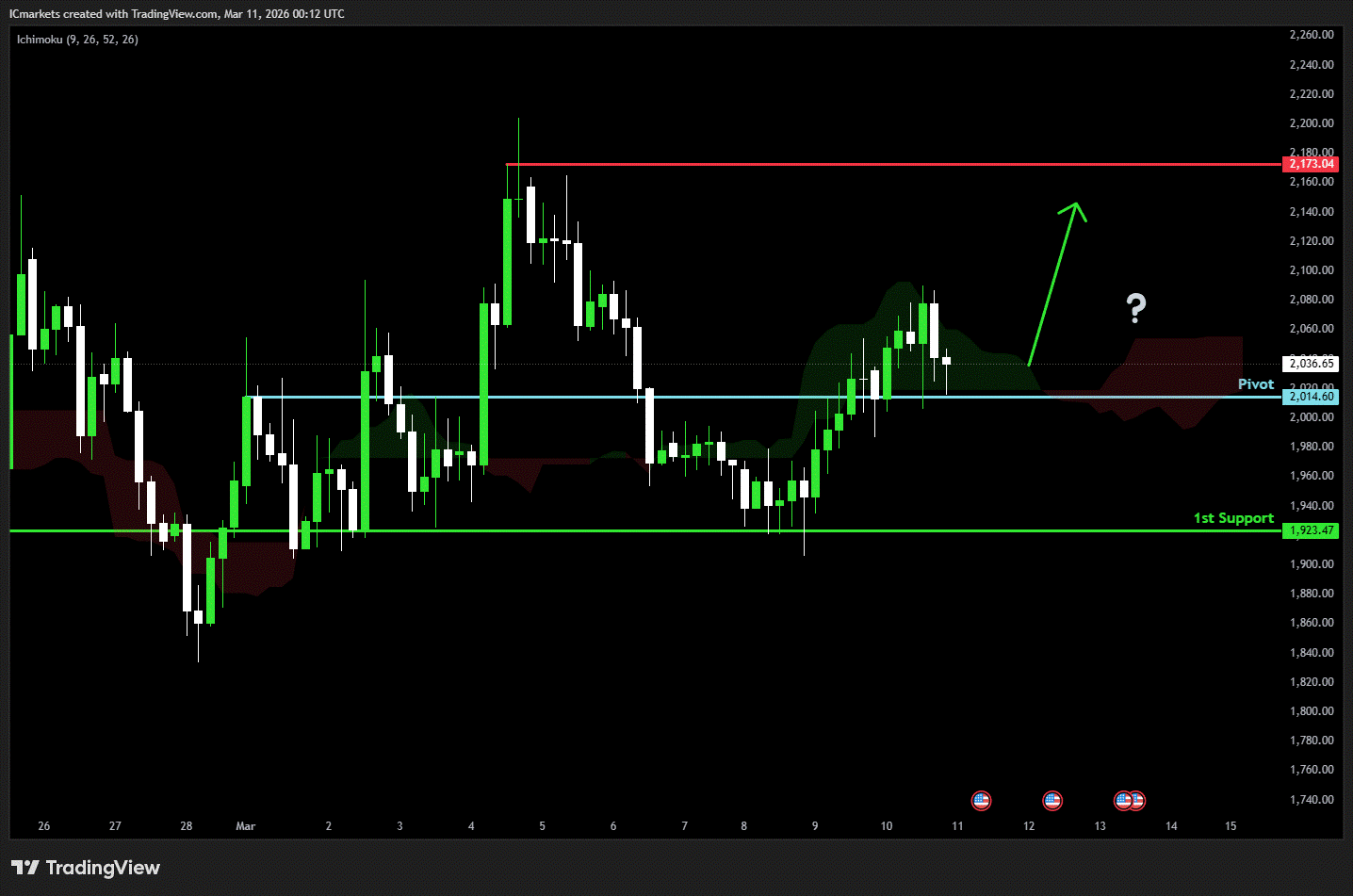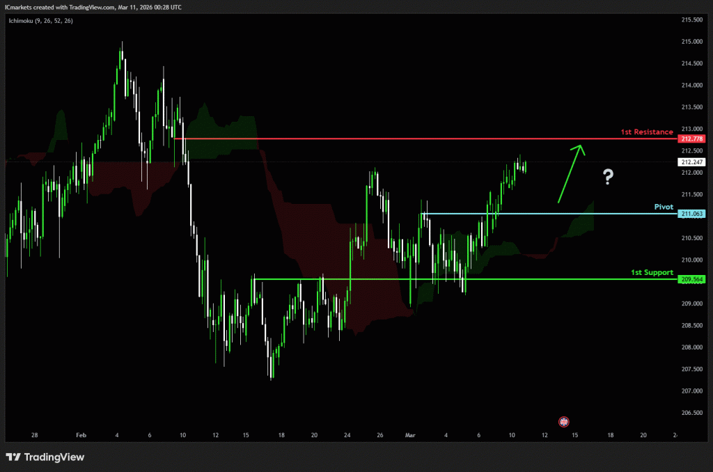 The price could see a short-term pullback toward the pivot before rising again toward the 1st resistance.