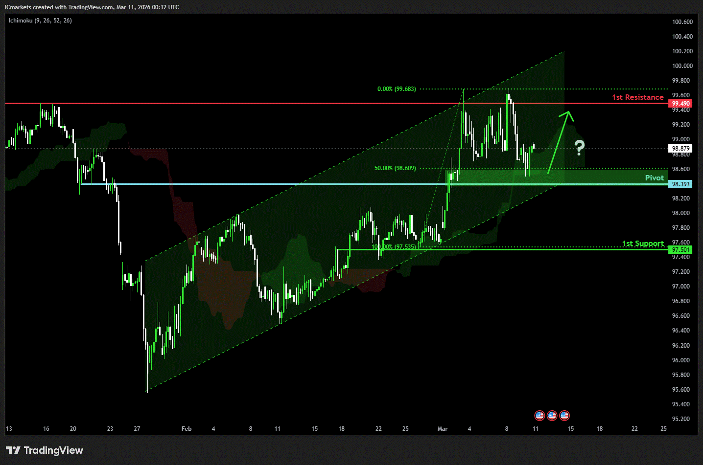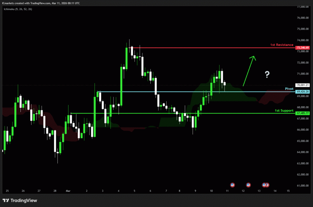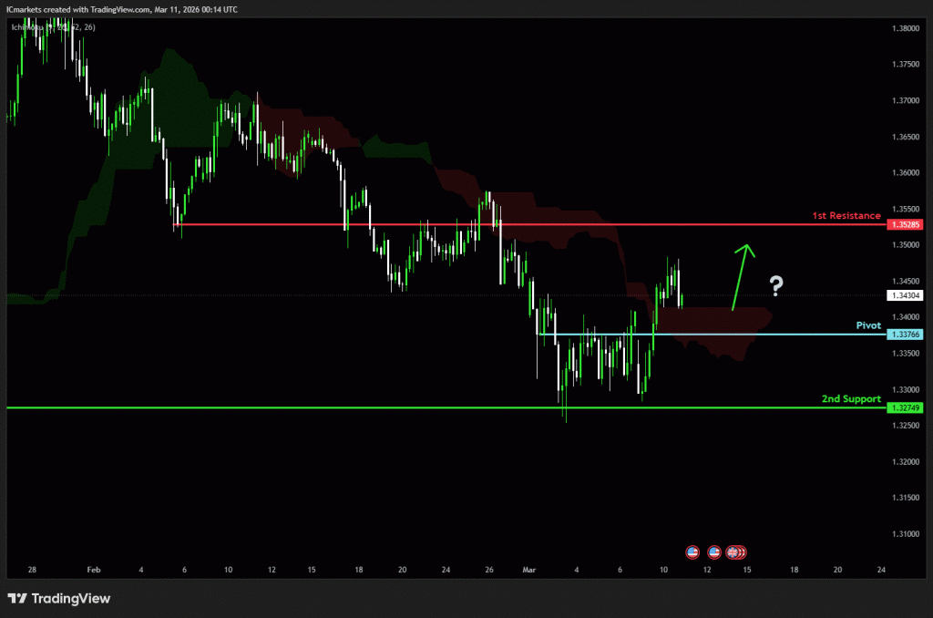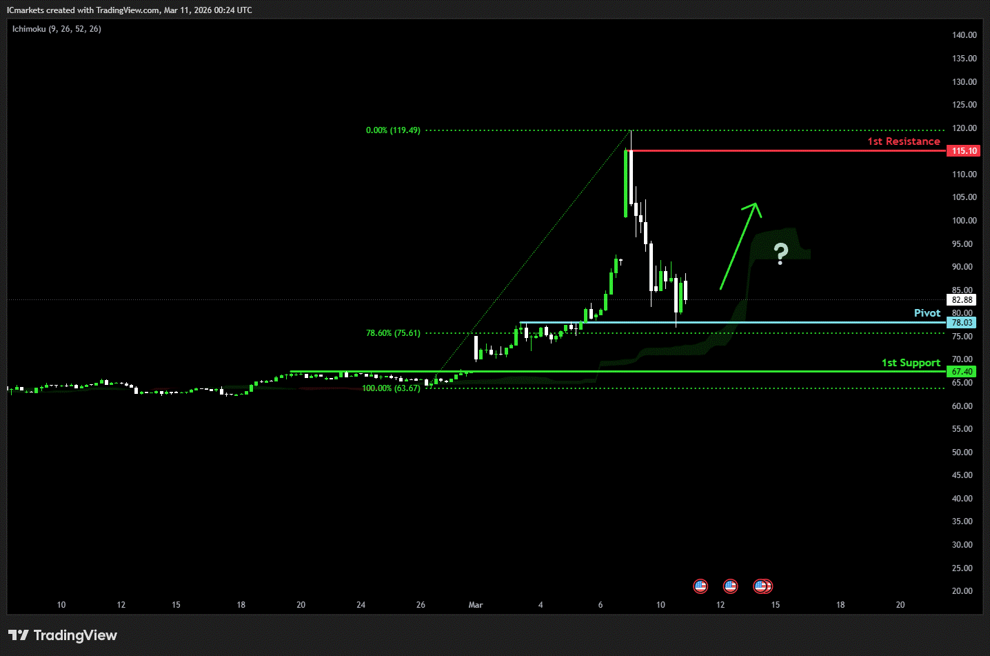 The price could see a short-term pullback toward the pivot before rising again toward the 1st resistance.