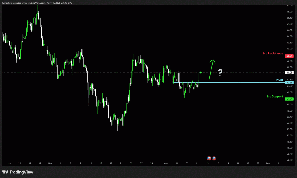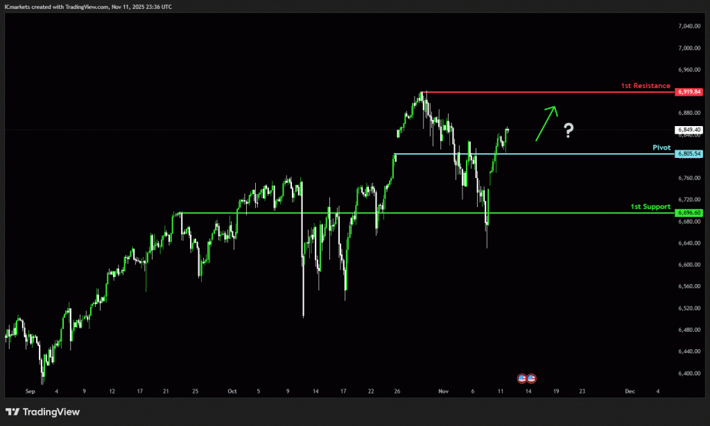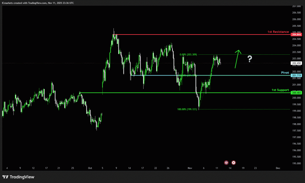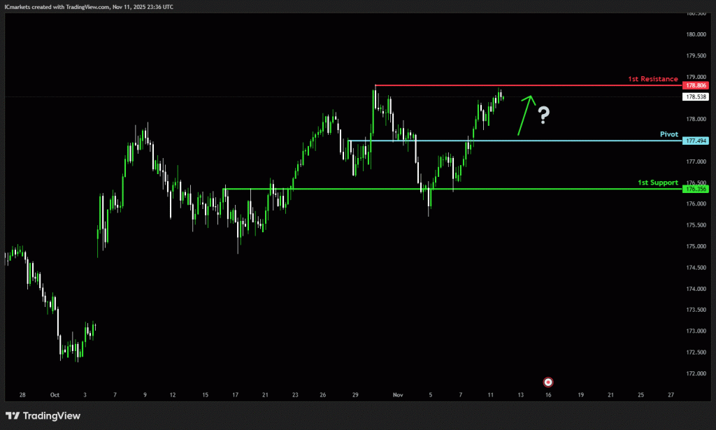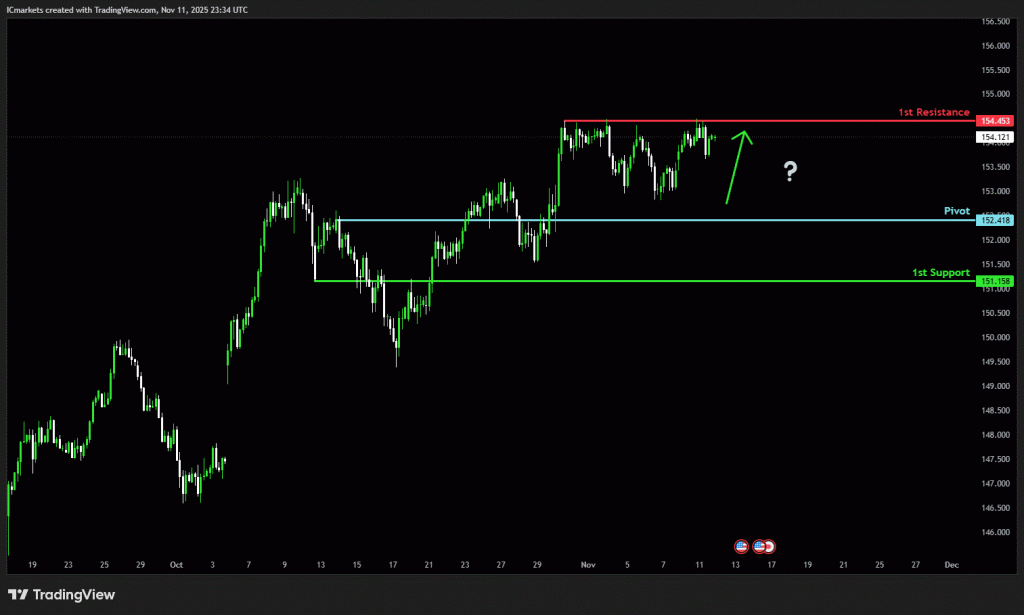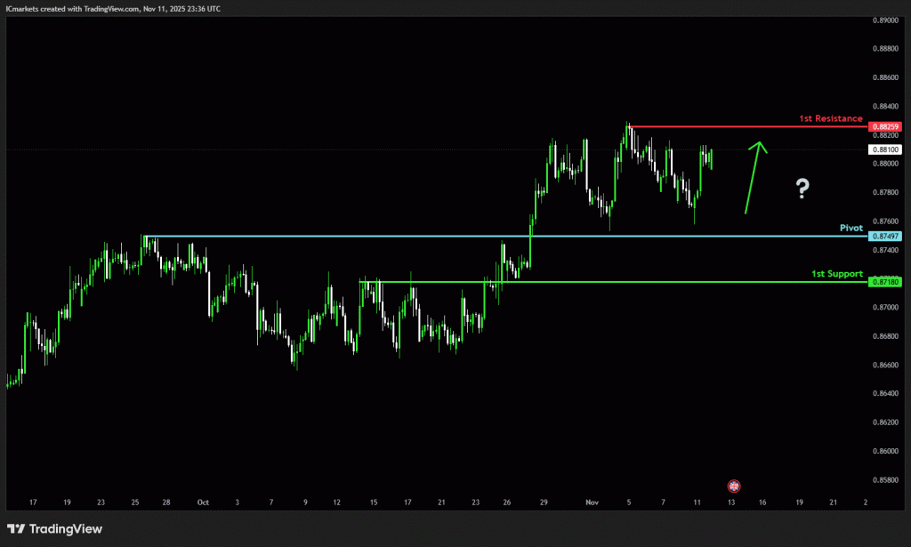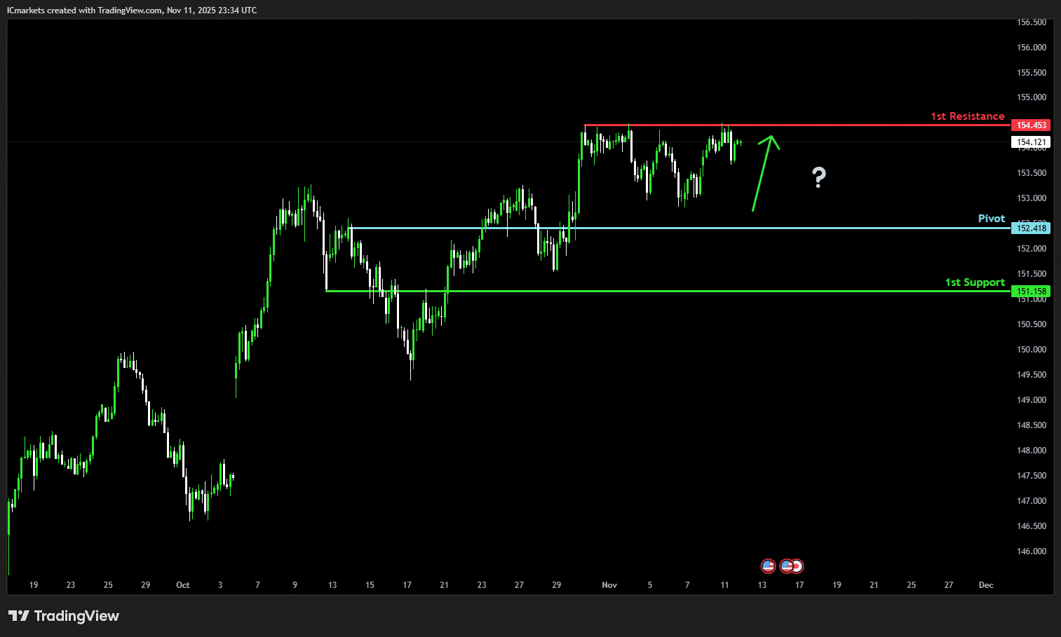 The price could see a short-term pullback toward the pivot before rising again toward the 1st resistance.
