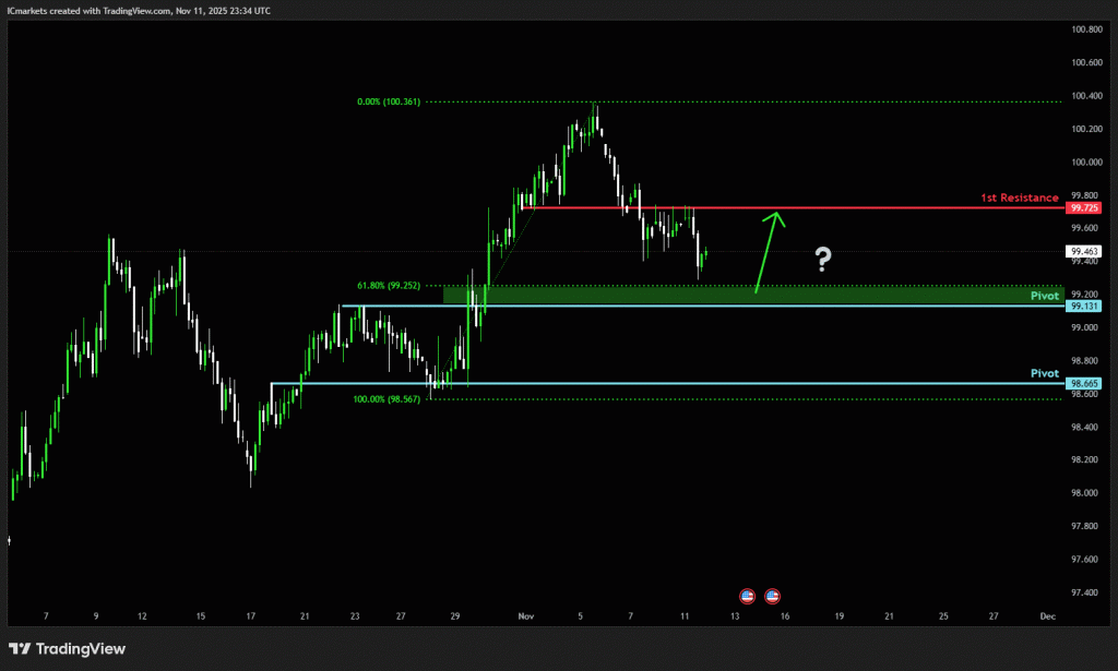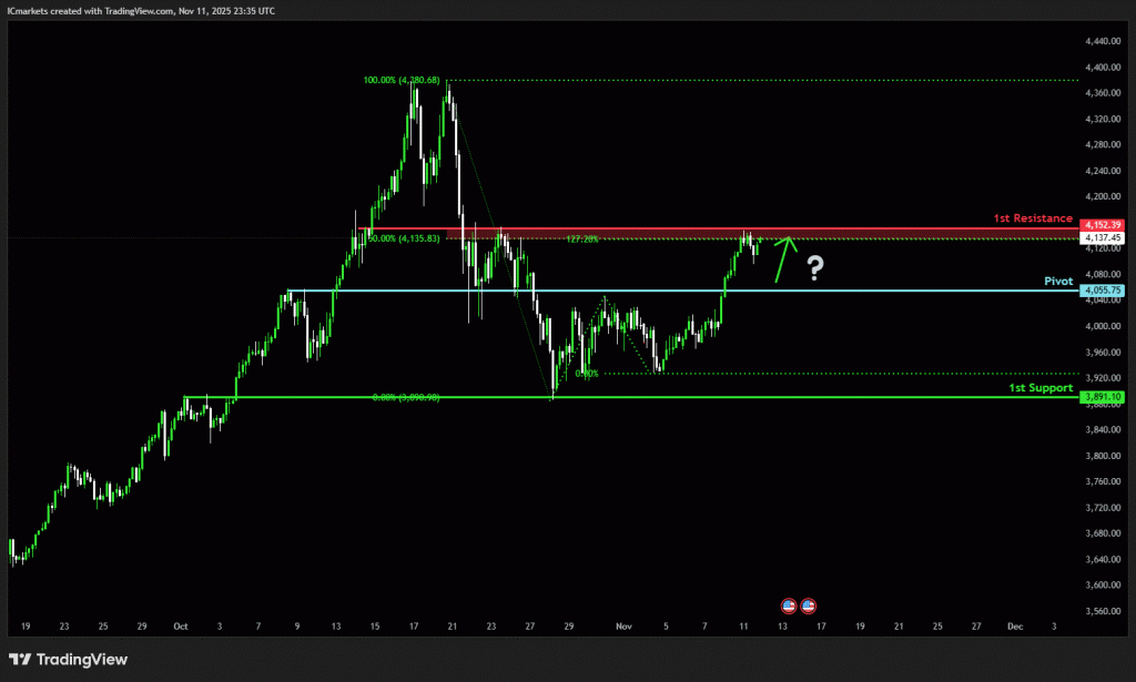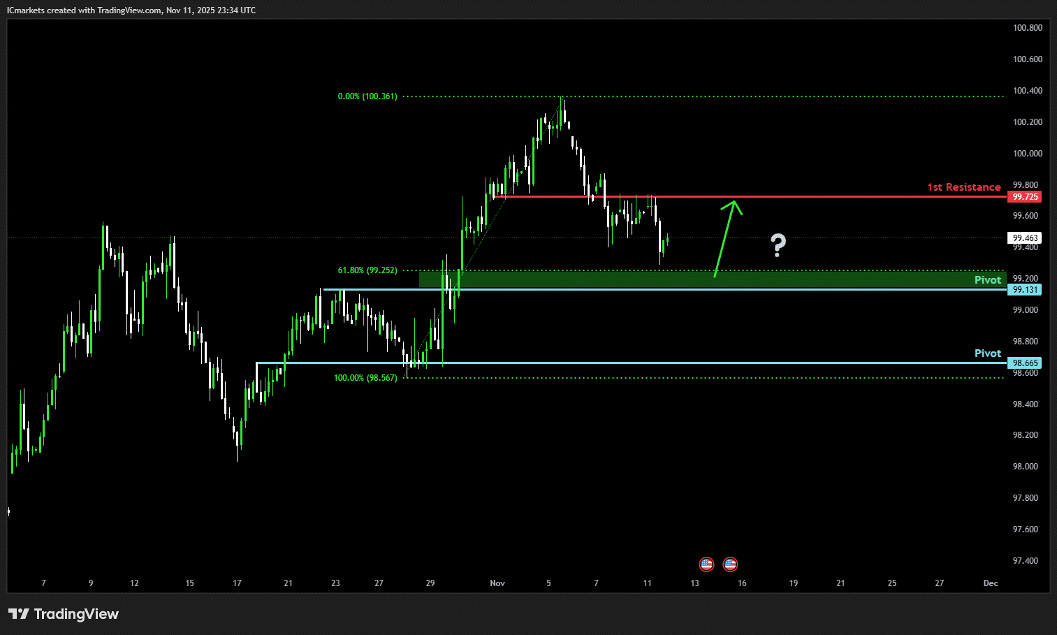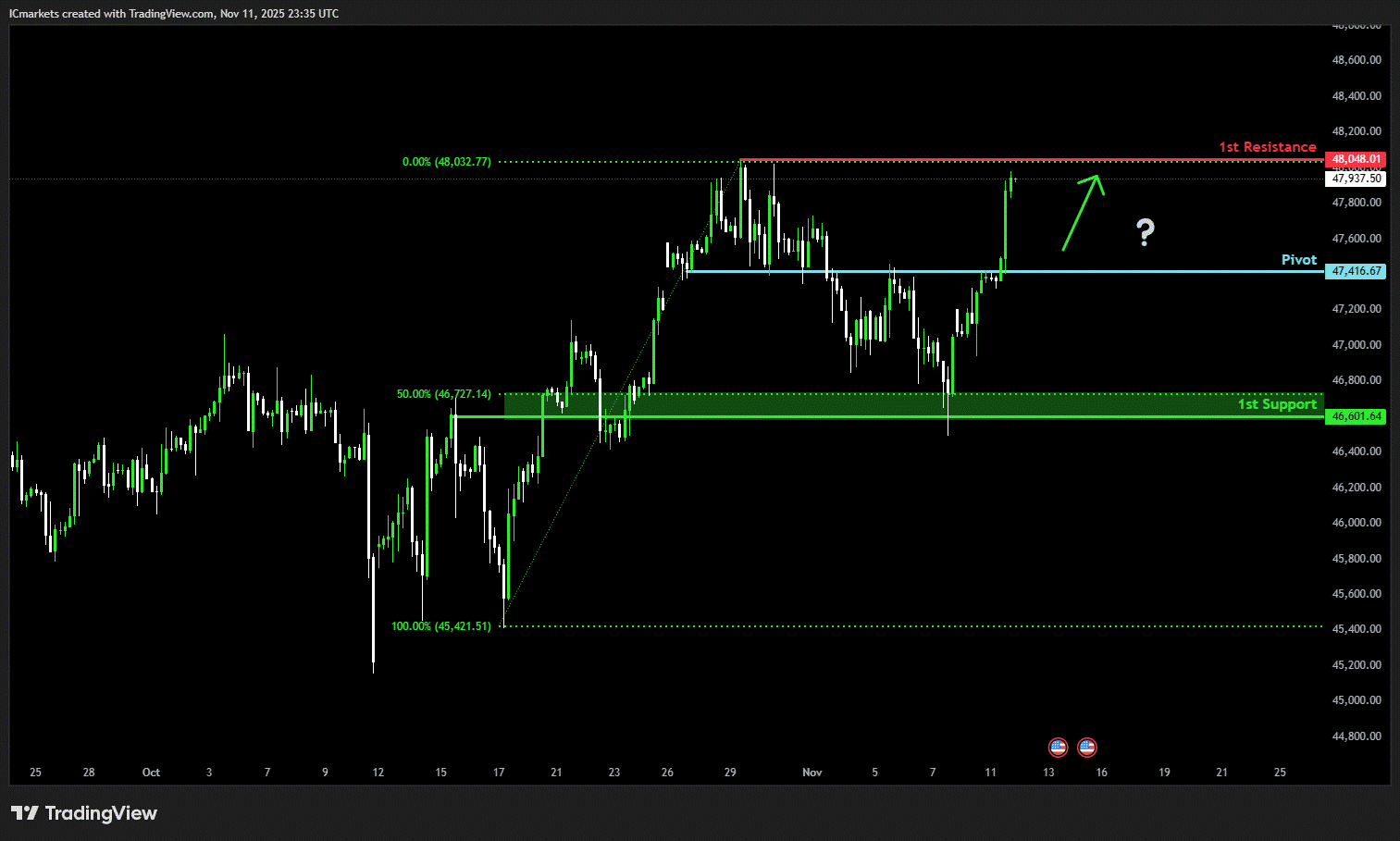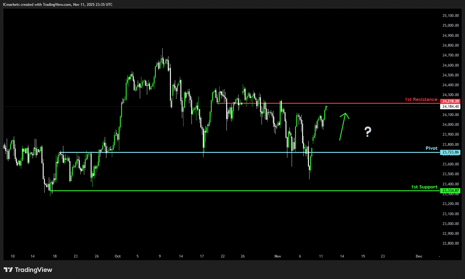 The price could see a short-term pullback toward the pivot before rising again toward the 1st resistance.