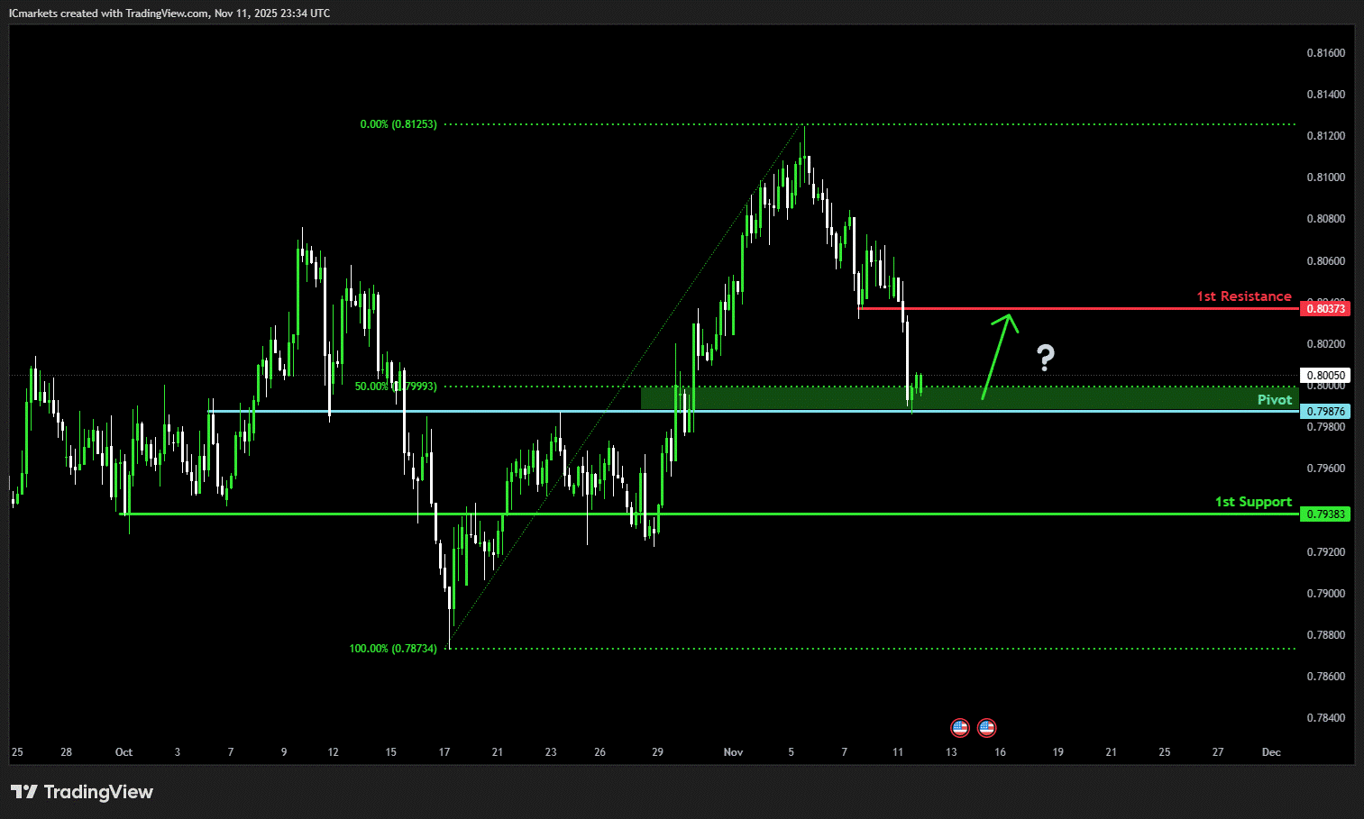 Supporting reasons: Identified as a pullback support that aligns with the 61.8% Fibonacci retracement, where renewed buying pressure could emerge to push the price higher.