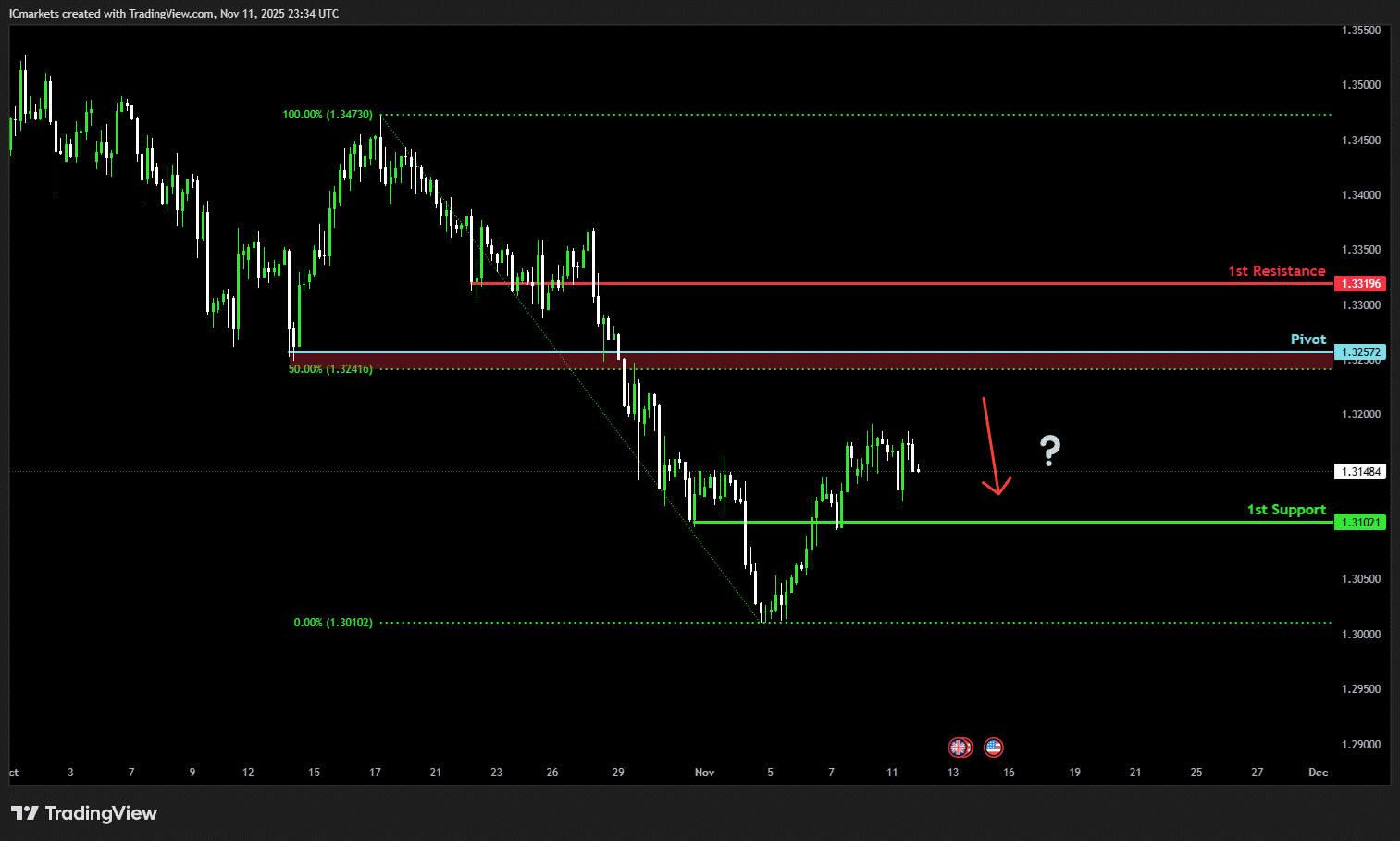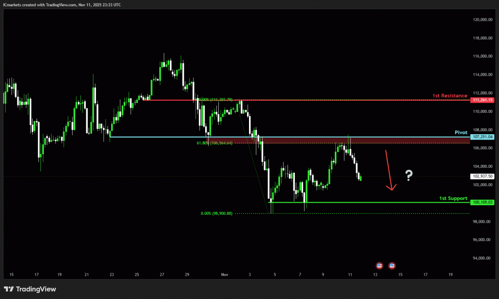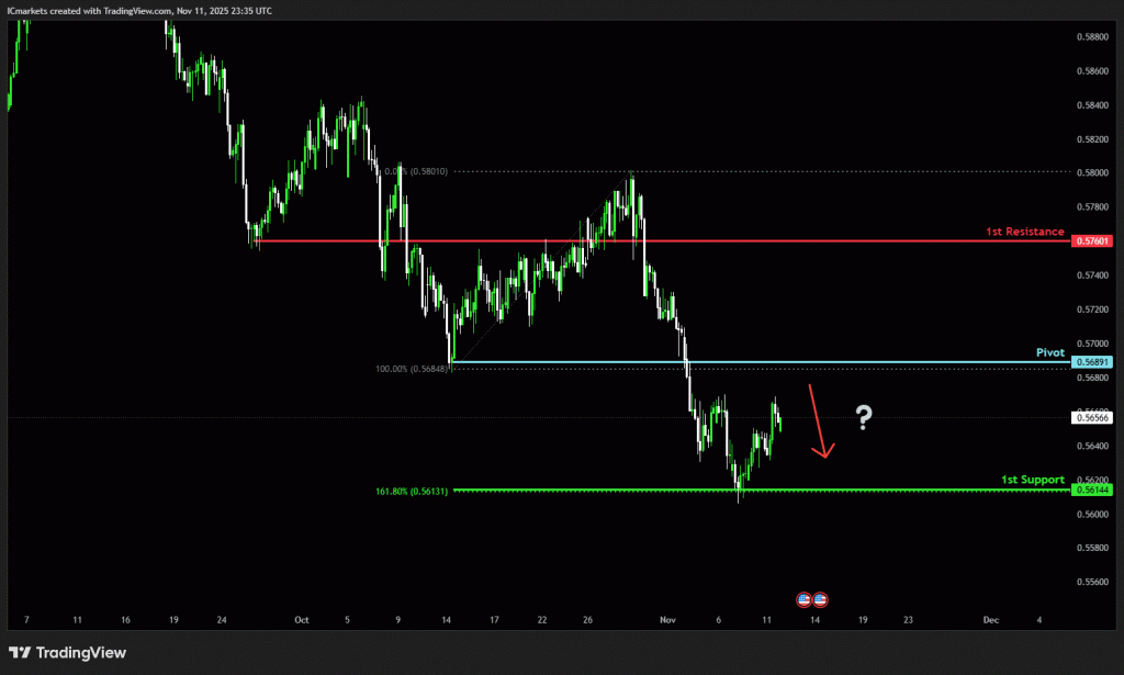 The price could see a short-term pullback toward the pivot before continuing its bearish move down toward the 1st support.