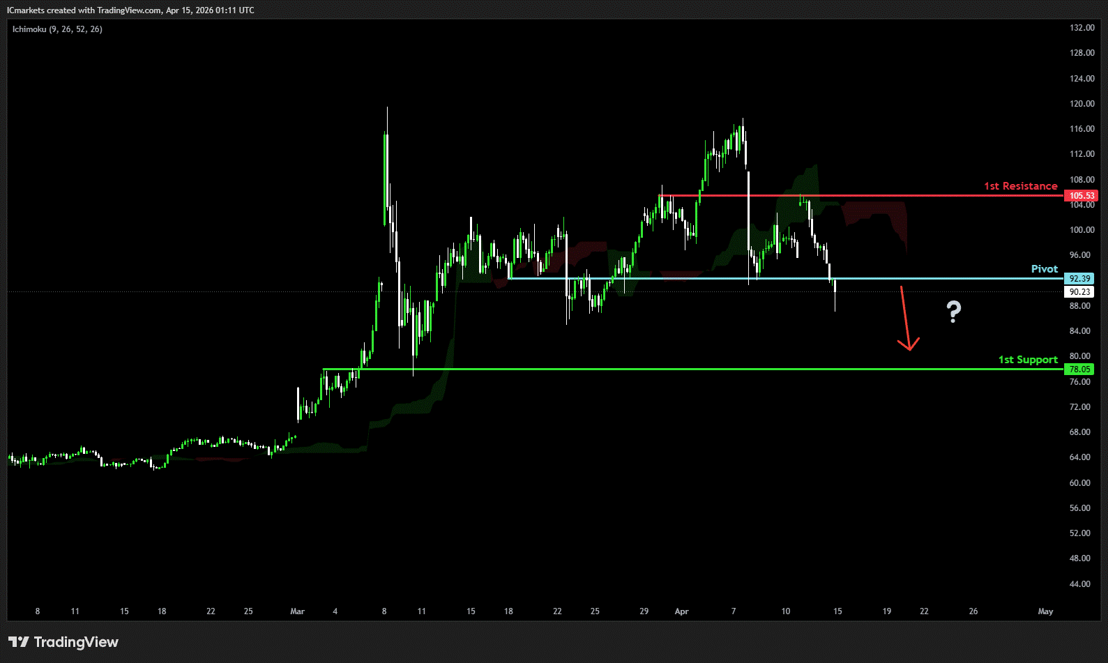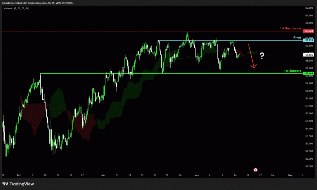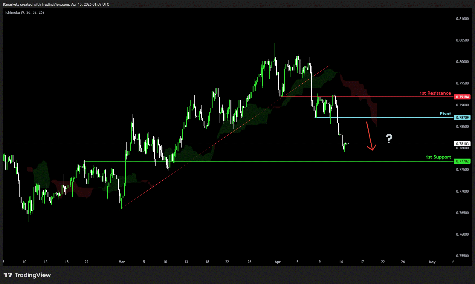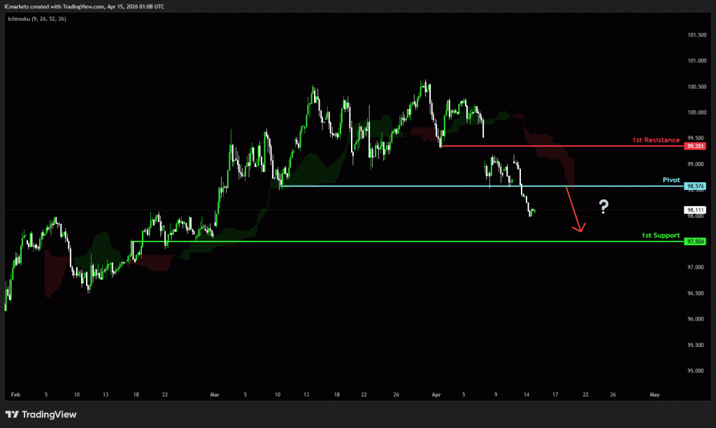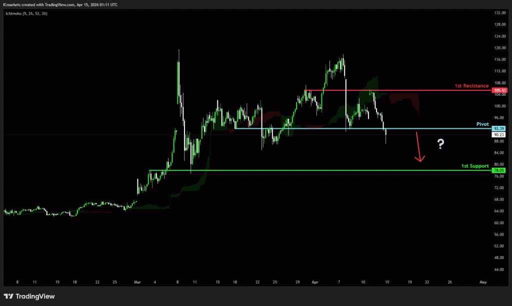The price could see a short-term pullback toward the pivot before continuing its bearish move down toward the 1st support.