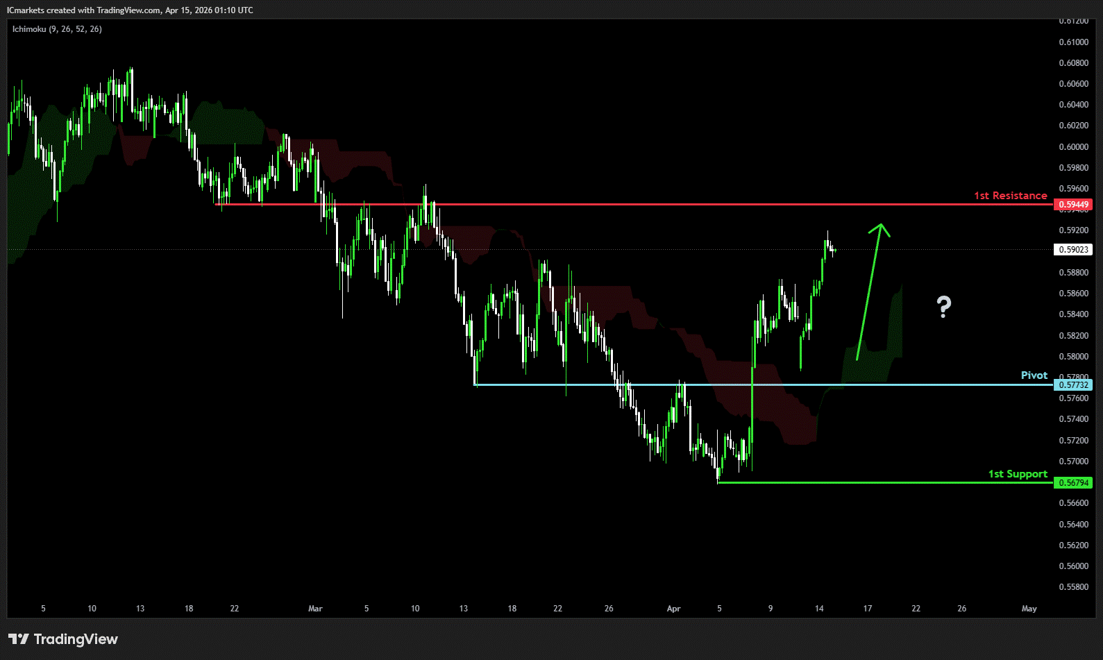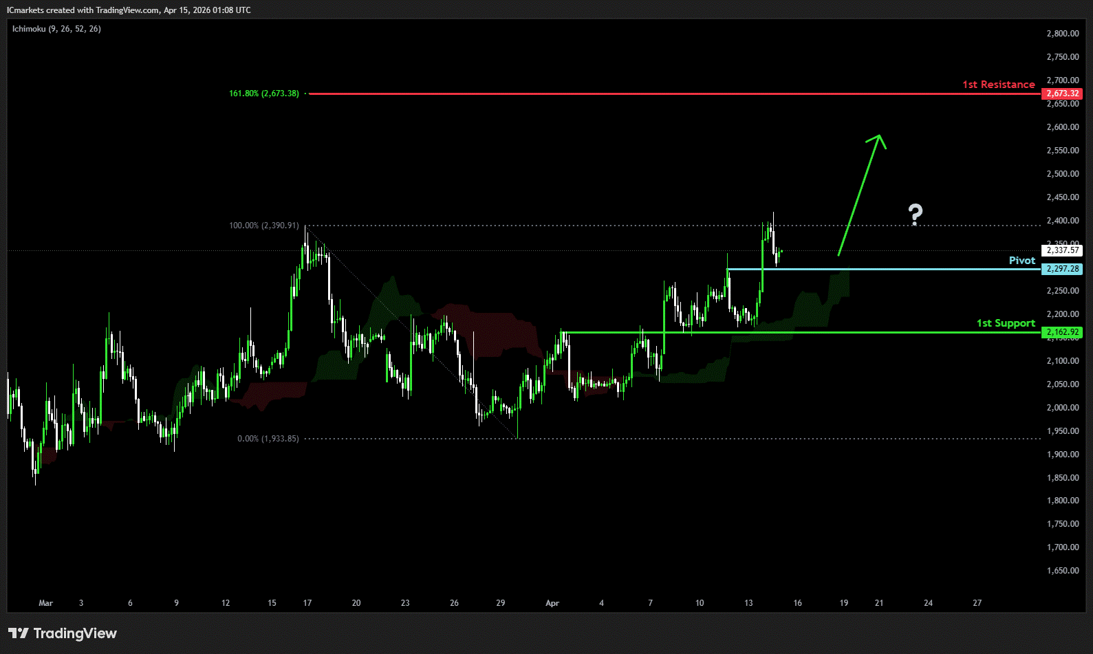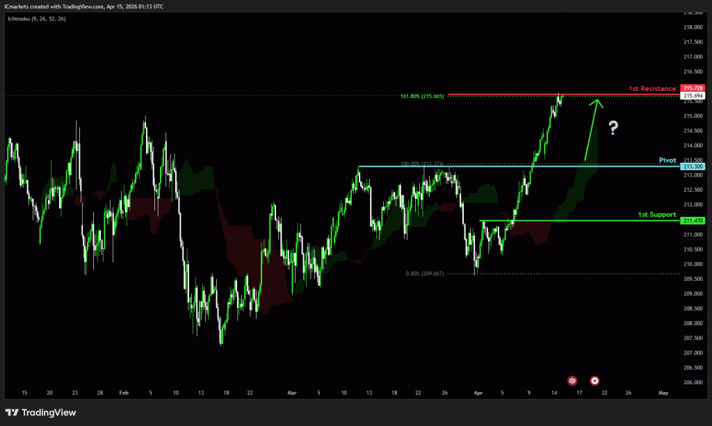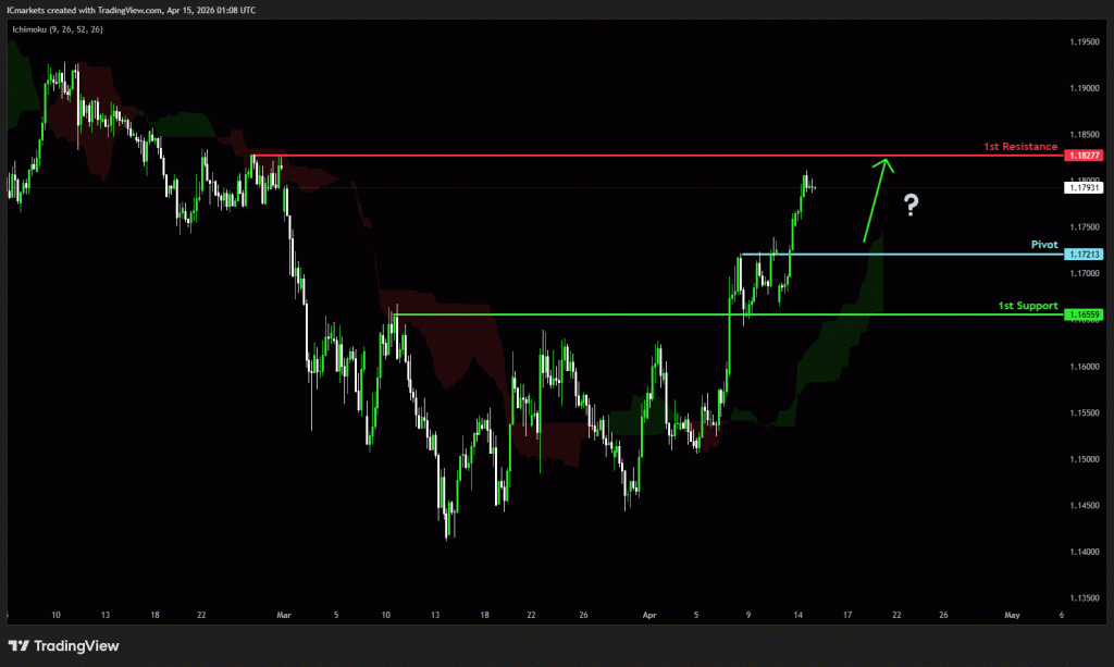 The price could see a short-term pullback toward the pivot before rising again toward the 1st resistance.