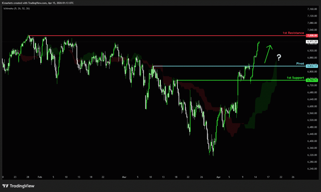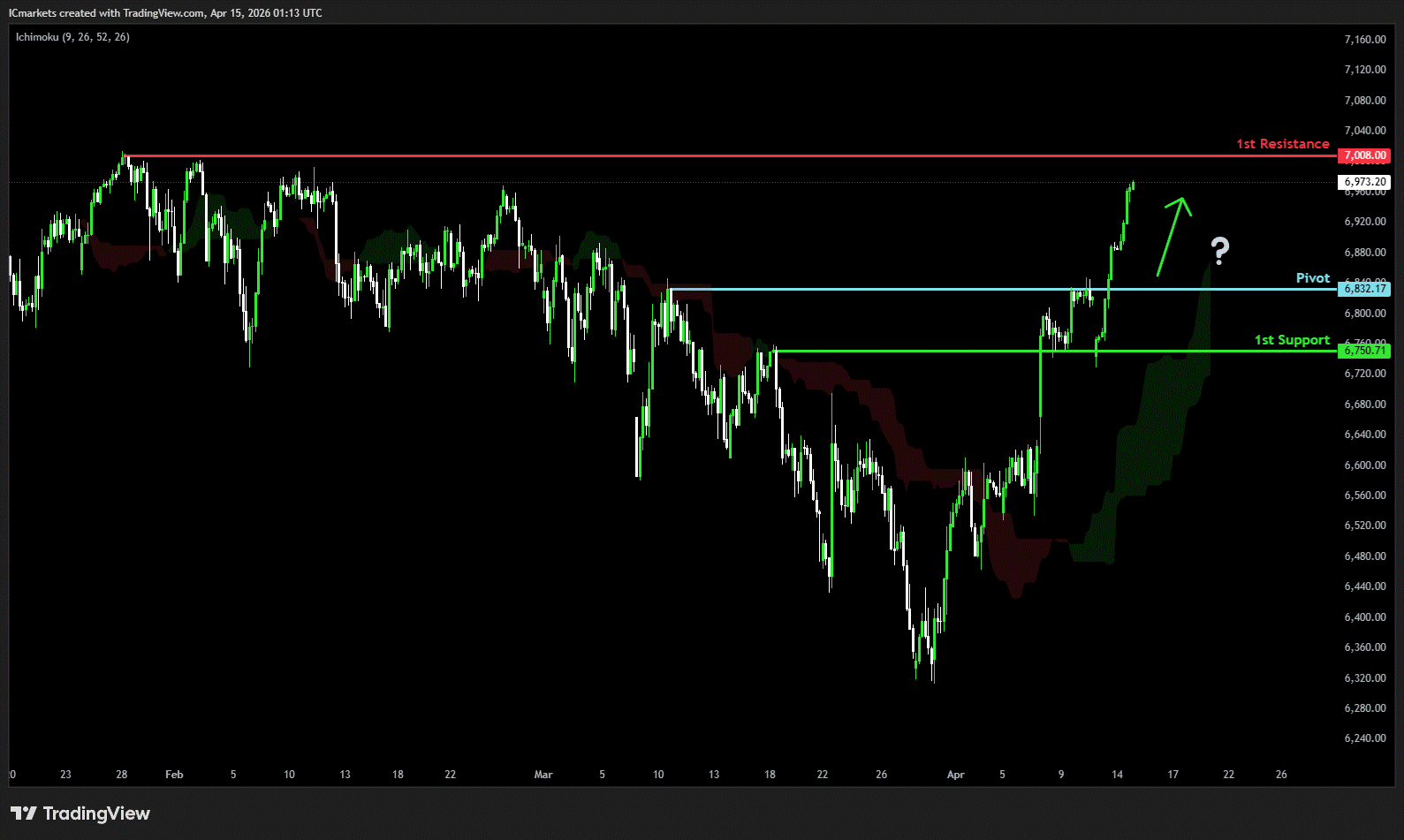 1st resistance: 7,008.00