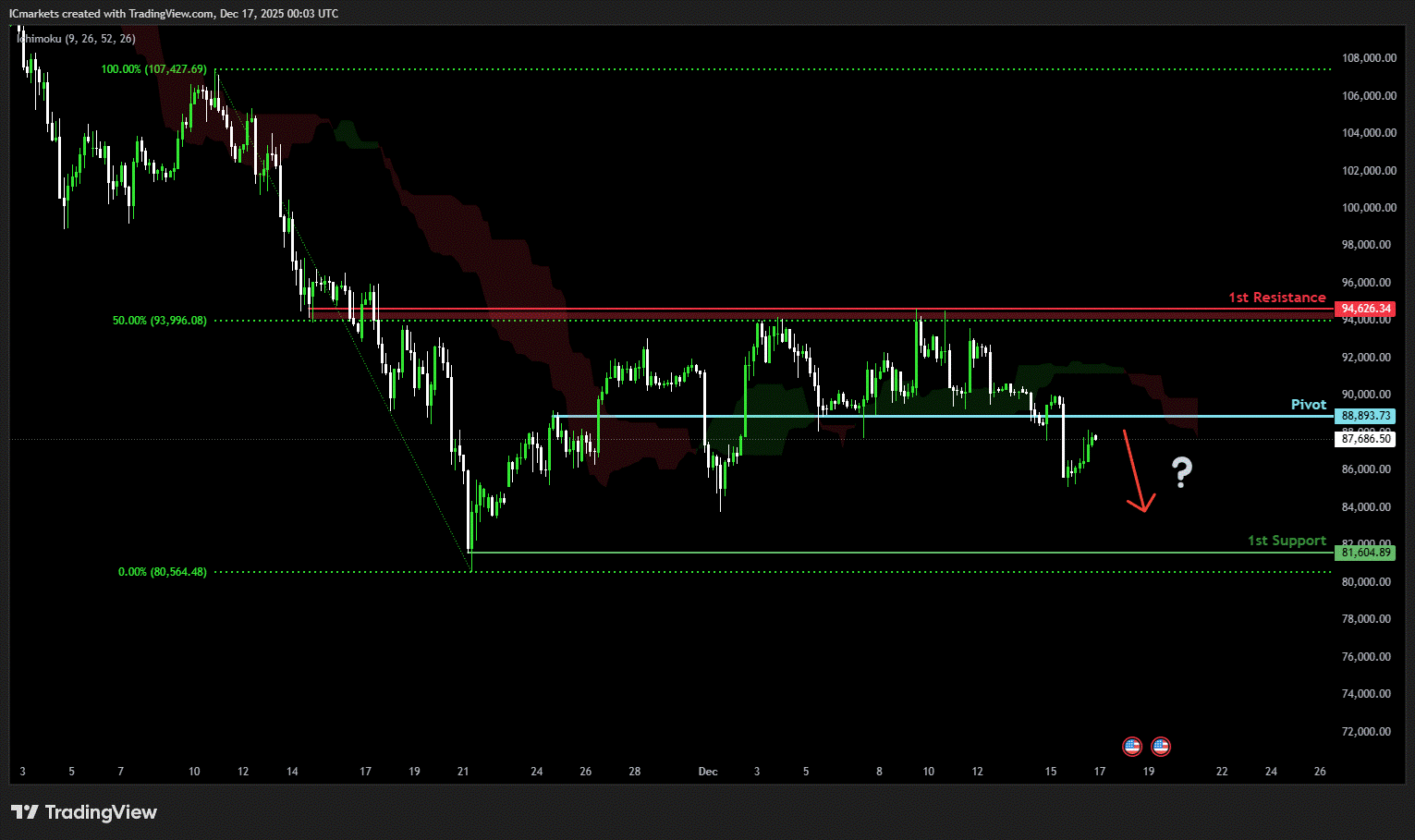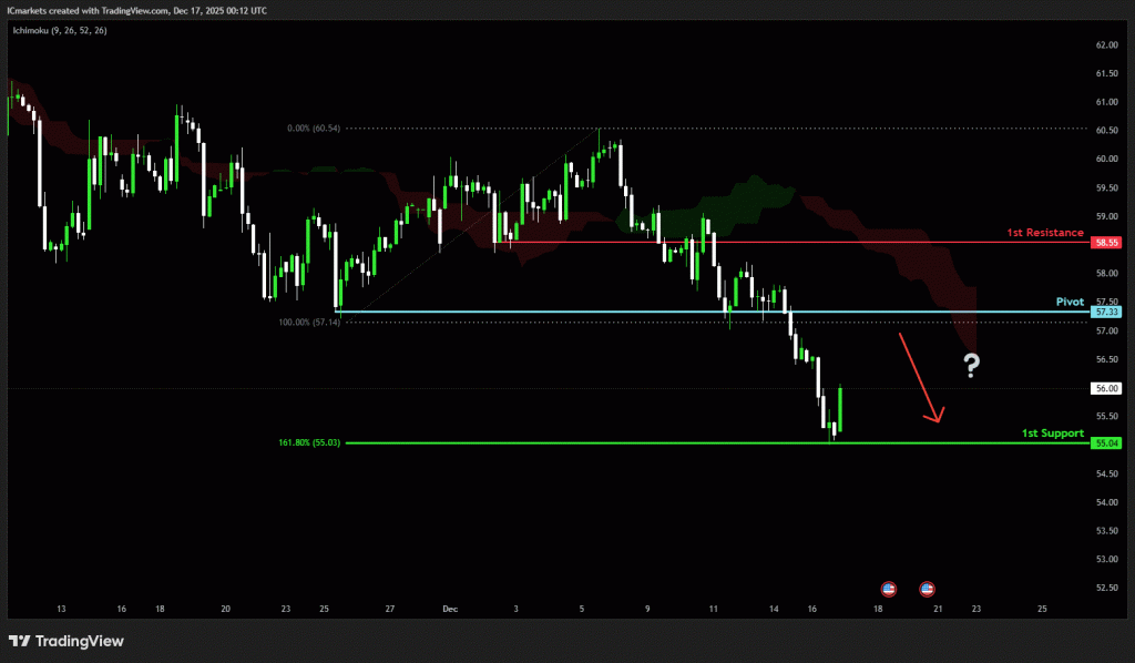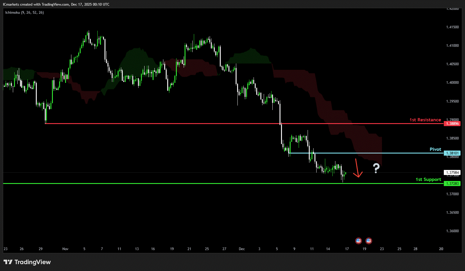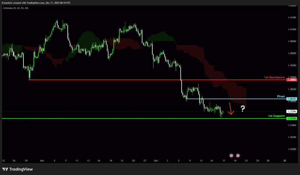 The price could see a short-term pullback toward the pivot before continuing its bearish move down toward the 1st support.
