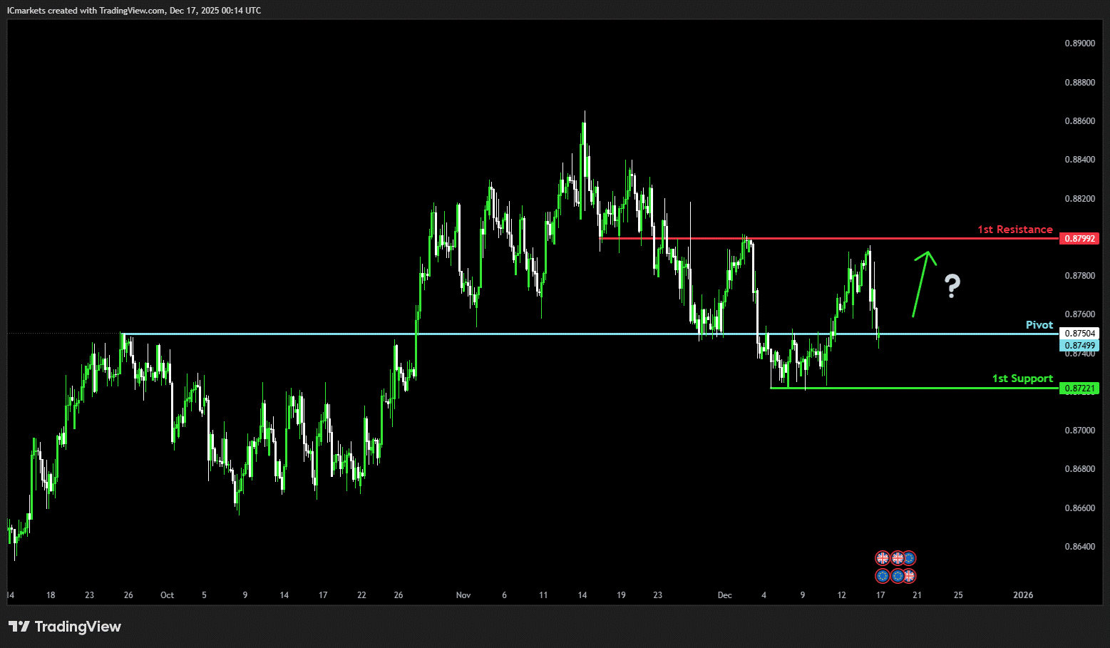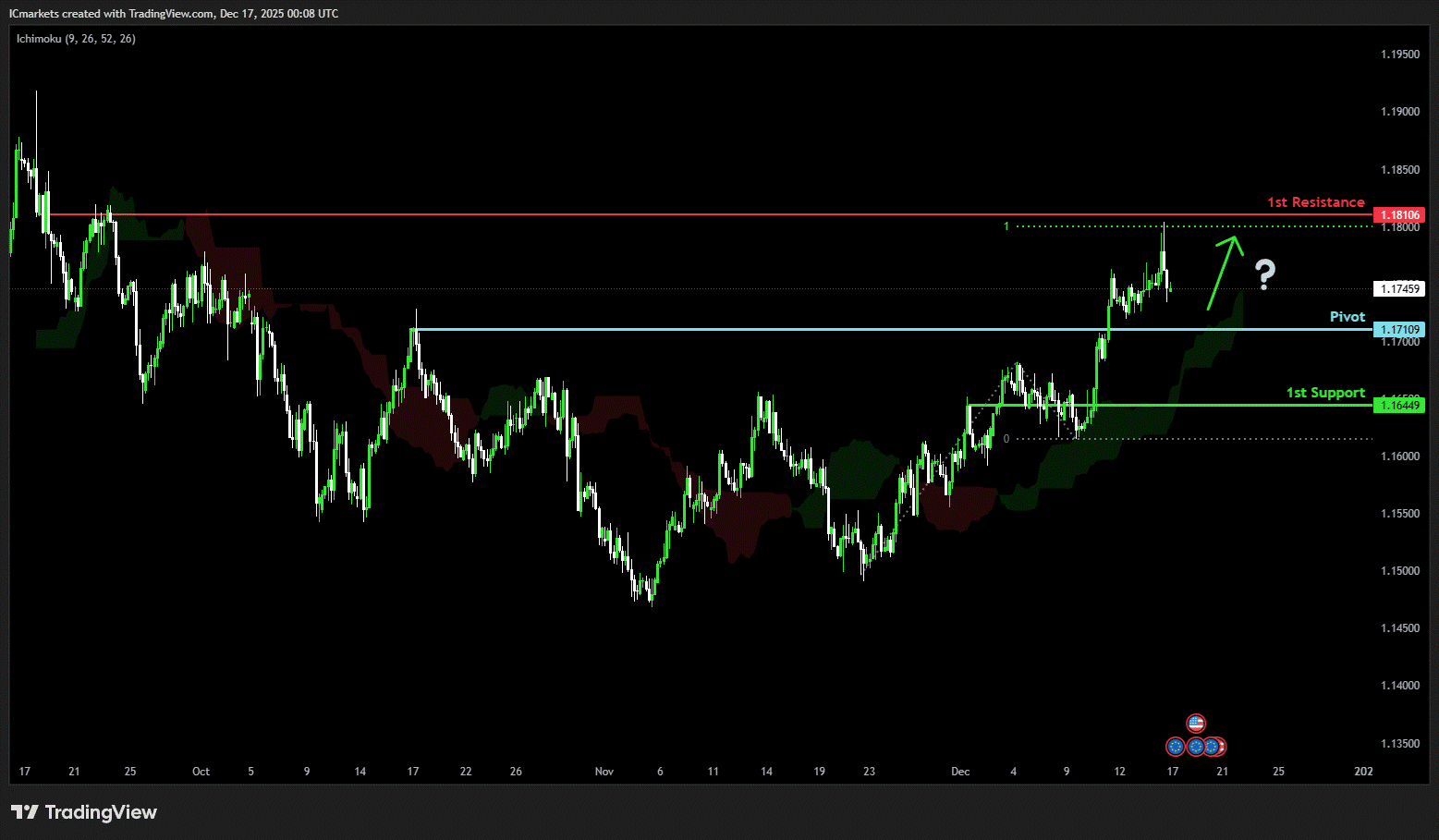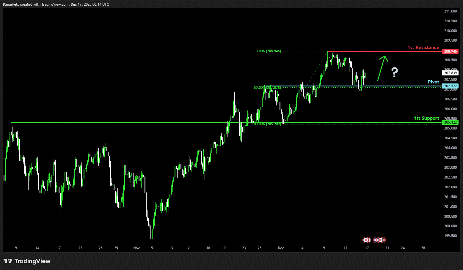 The price could see a short-term pullback toward the pivot before rising again toward the 1st resistance.