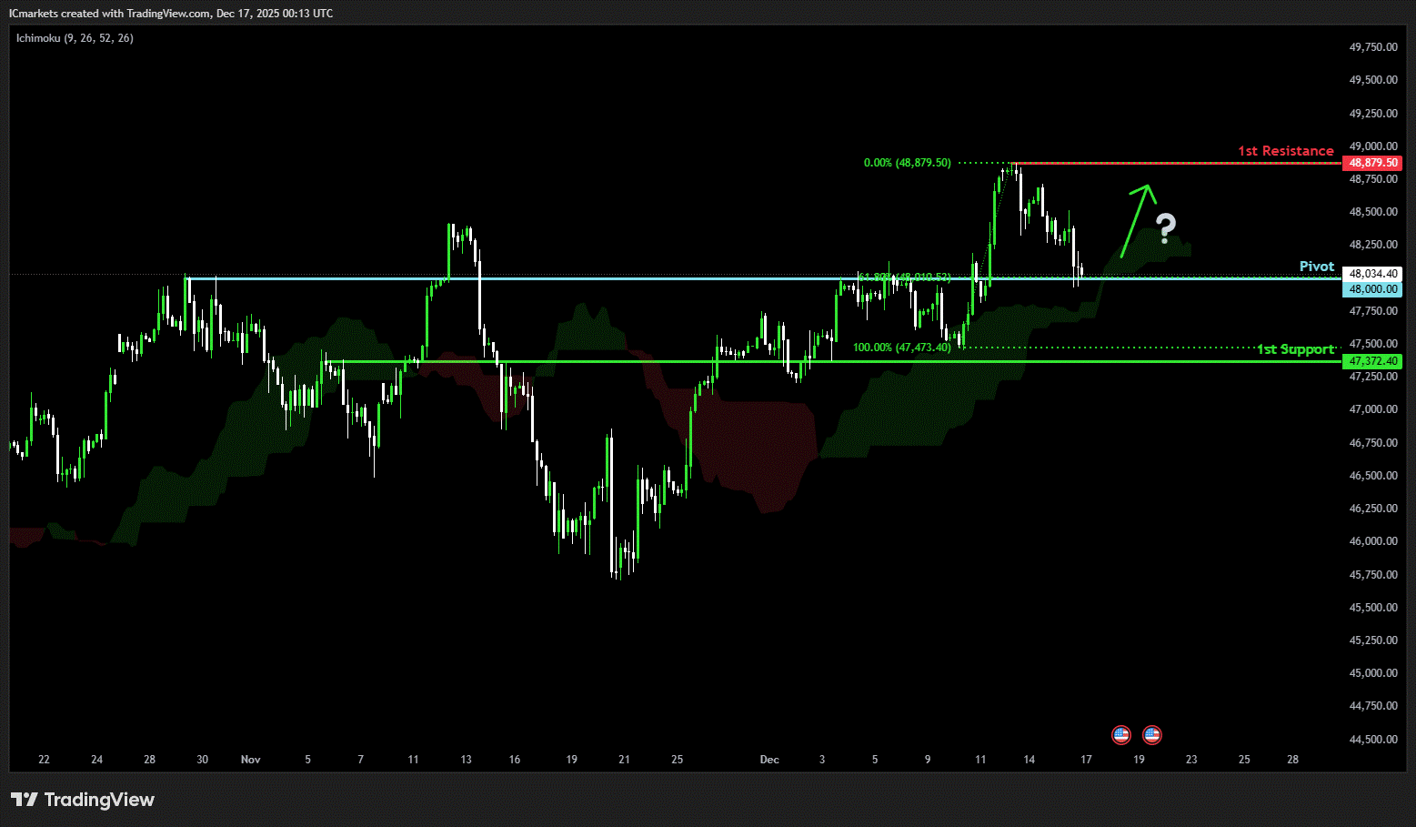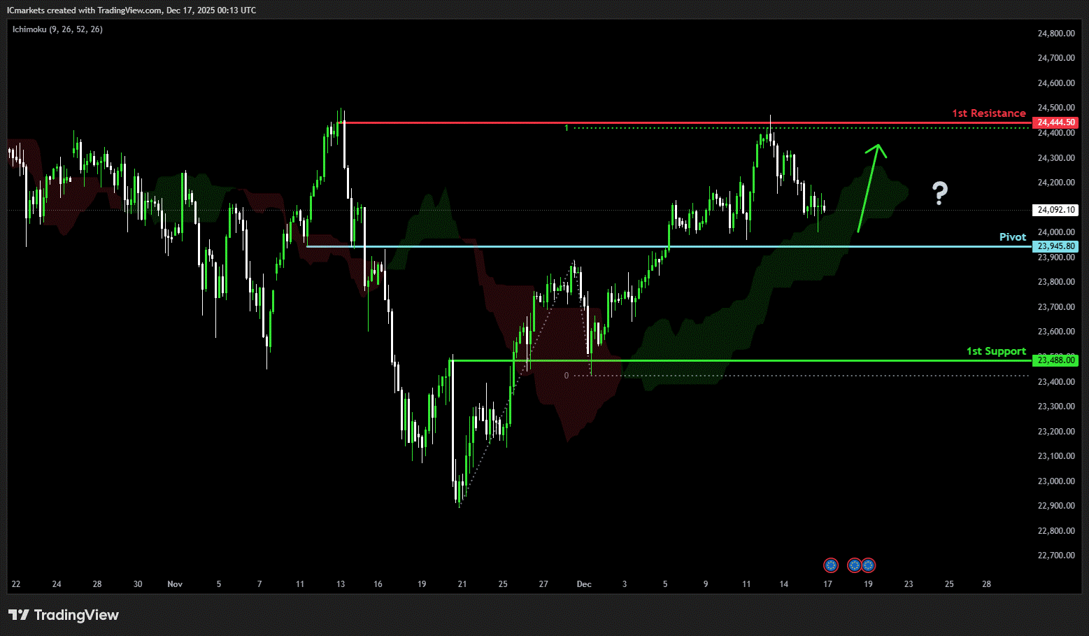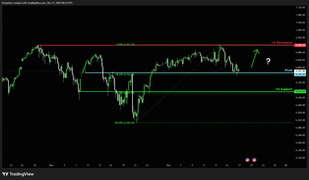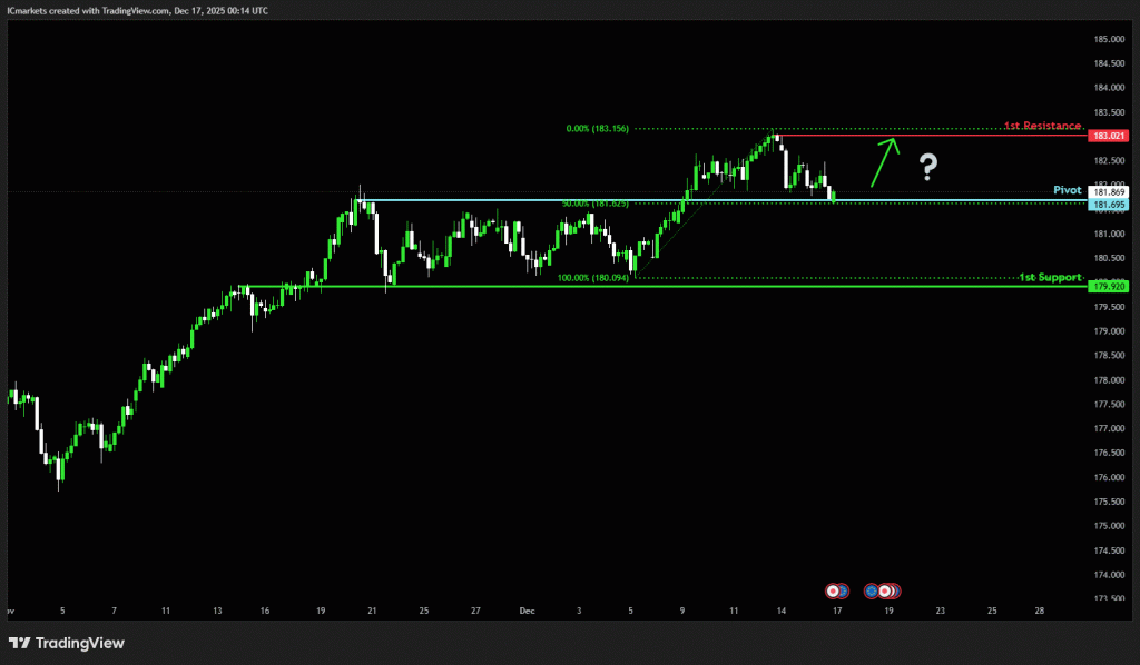 The price could see a short-term pullback toward the pivot before rising again toward the 1st resistance.