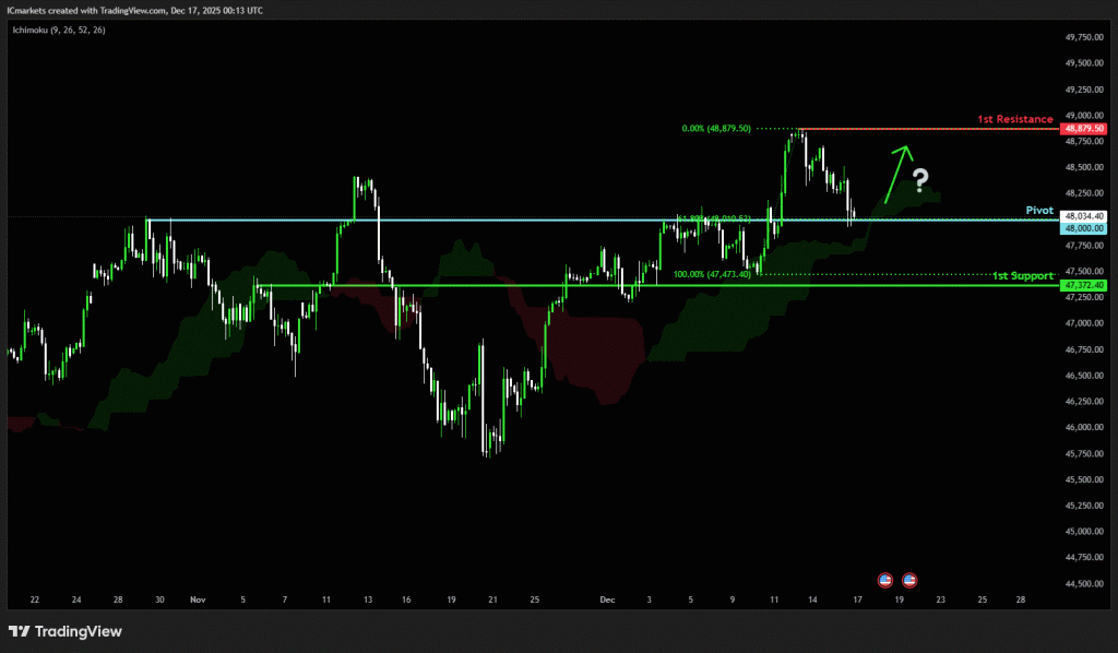 Supporting reasons: Identified as a pullback support that aligns with the 61.8% Fibonacci retracement, where renewed buying pressure could emerge to push the price higher.