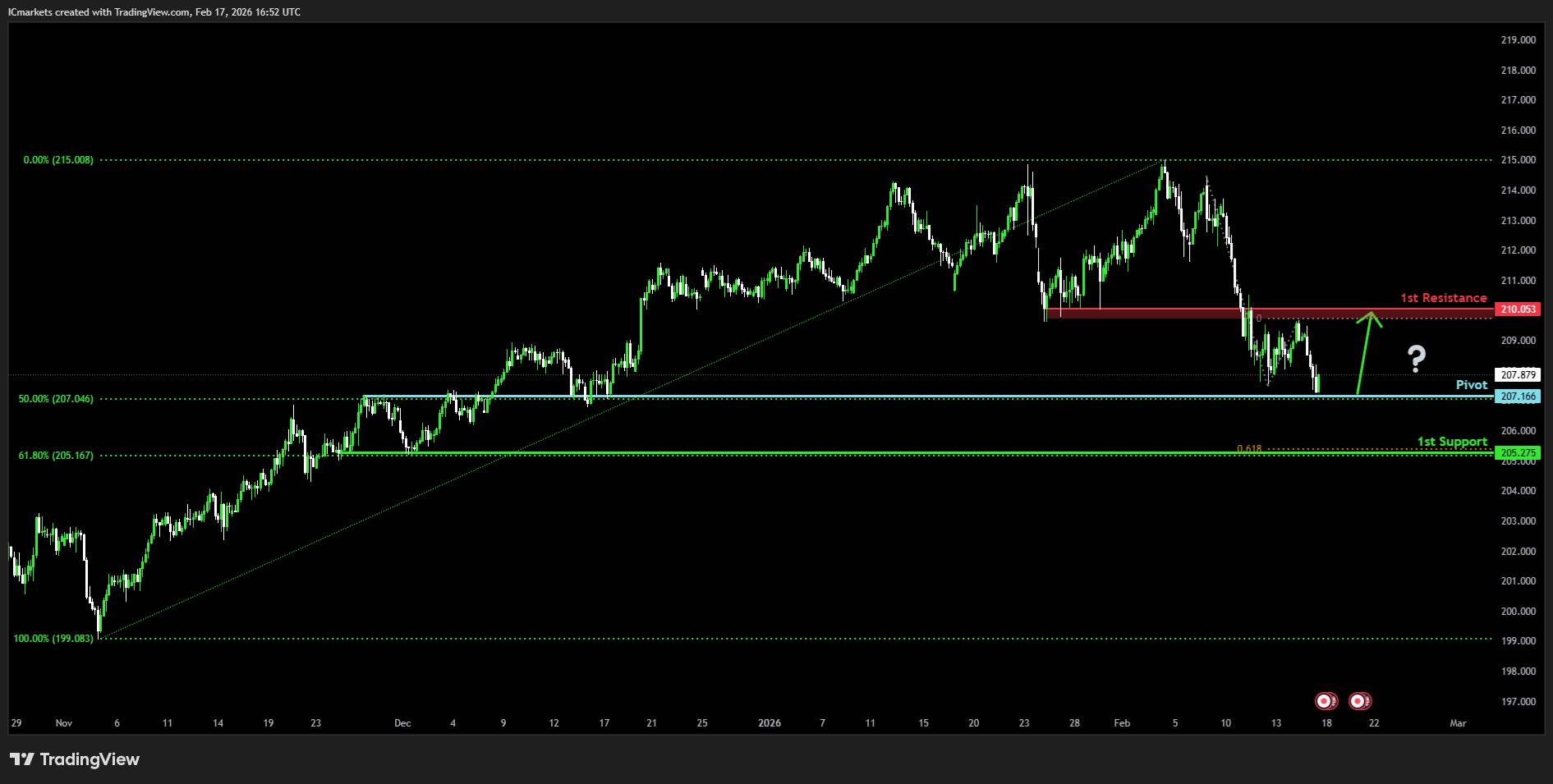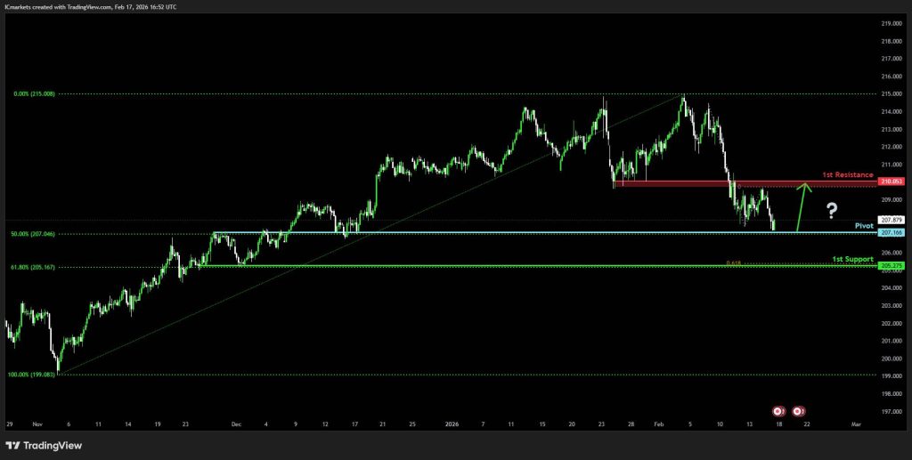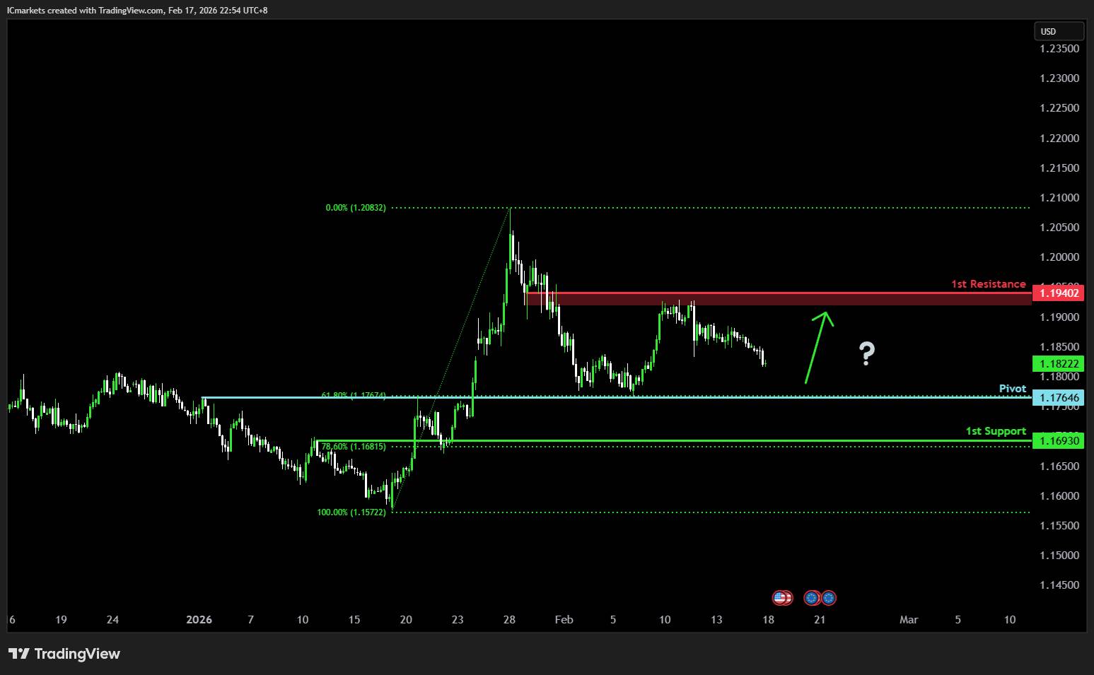 Supporting reasons: Identified as a pullback support that aligns with the 61.8% Fibonacci retracement, where renewed buying pressure could emerge and push the price to the 1st resistance.