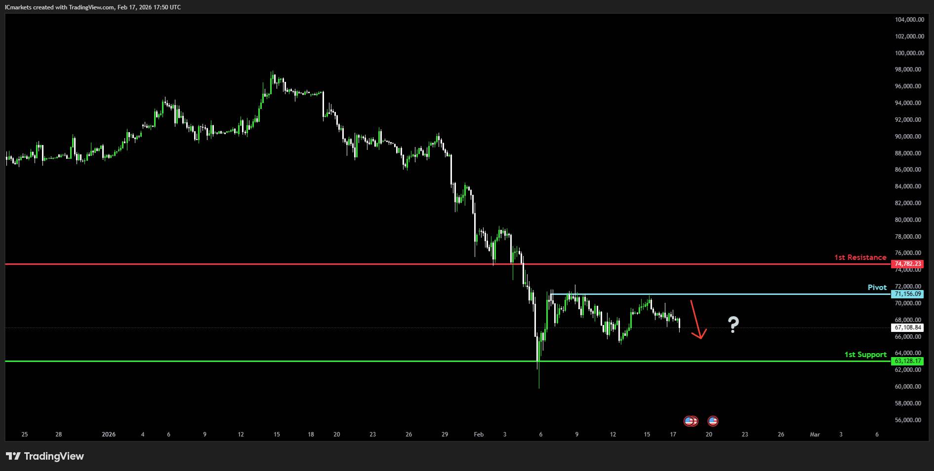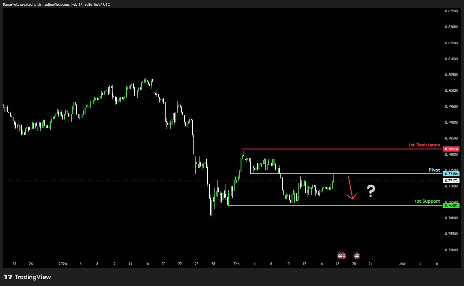 The price is currently reacting off the pivot and may fall again to the 1st support.