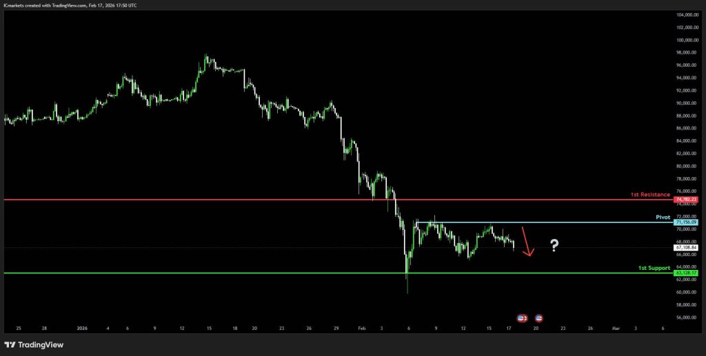 The price is rising toward the pivot before continuing its bearish move down toward the 1st support.