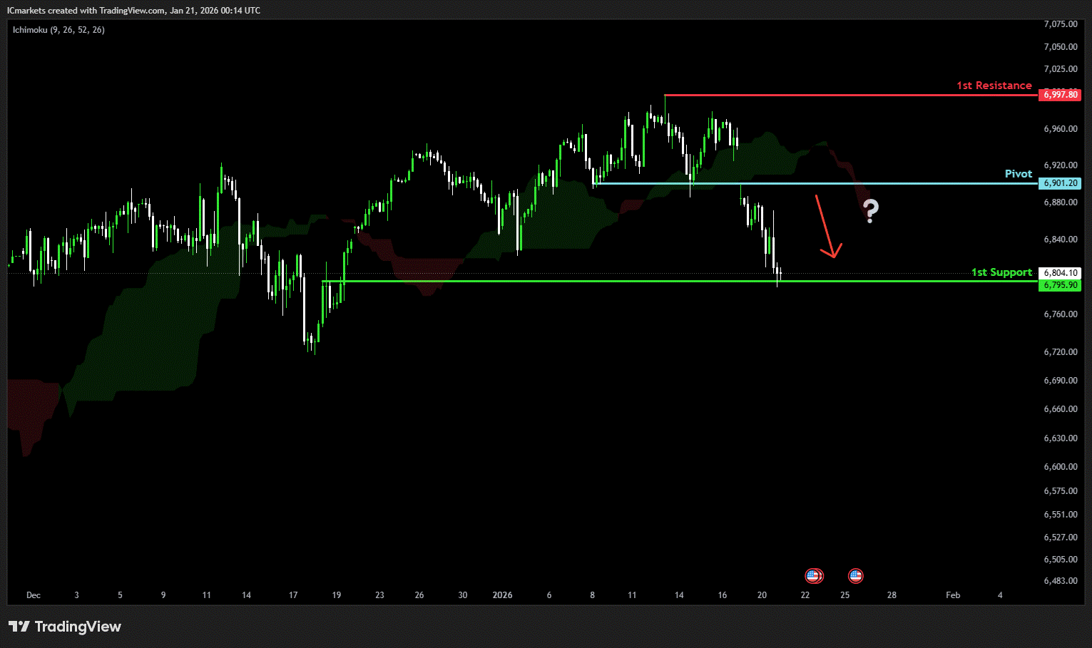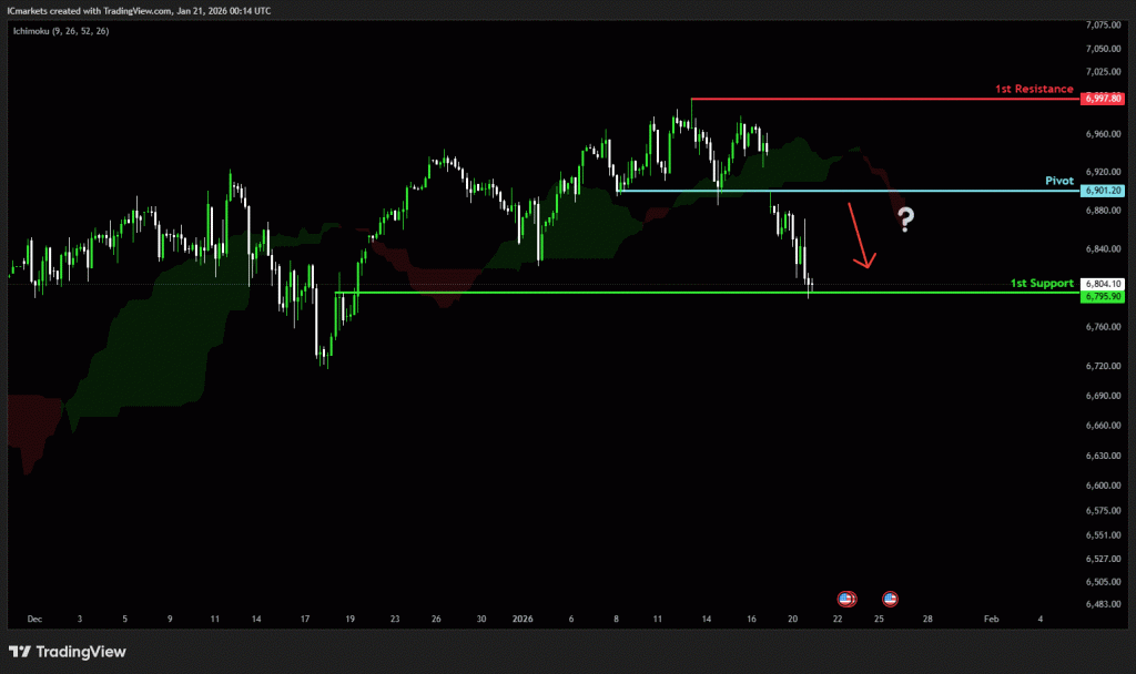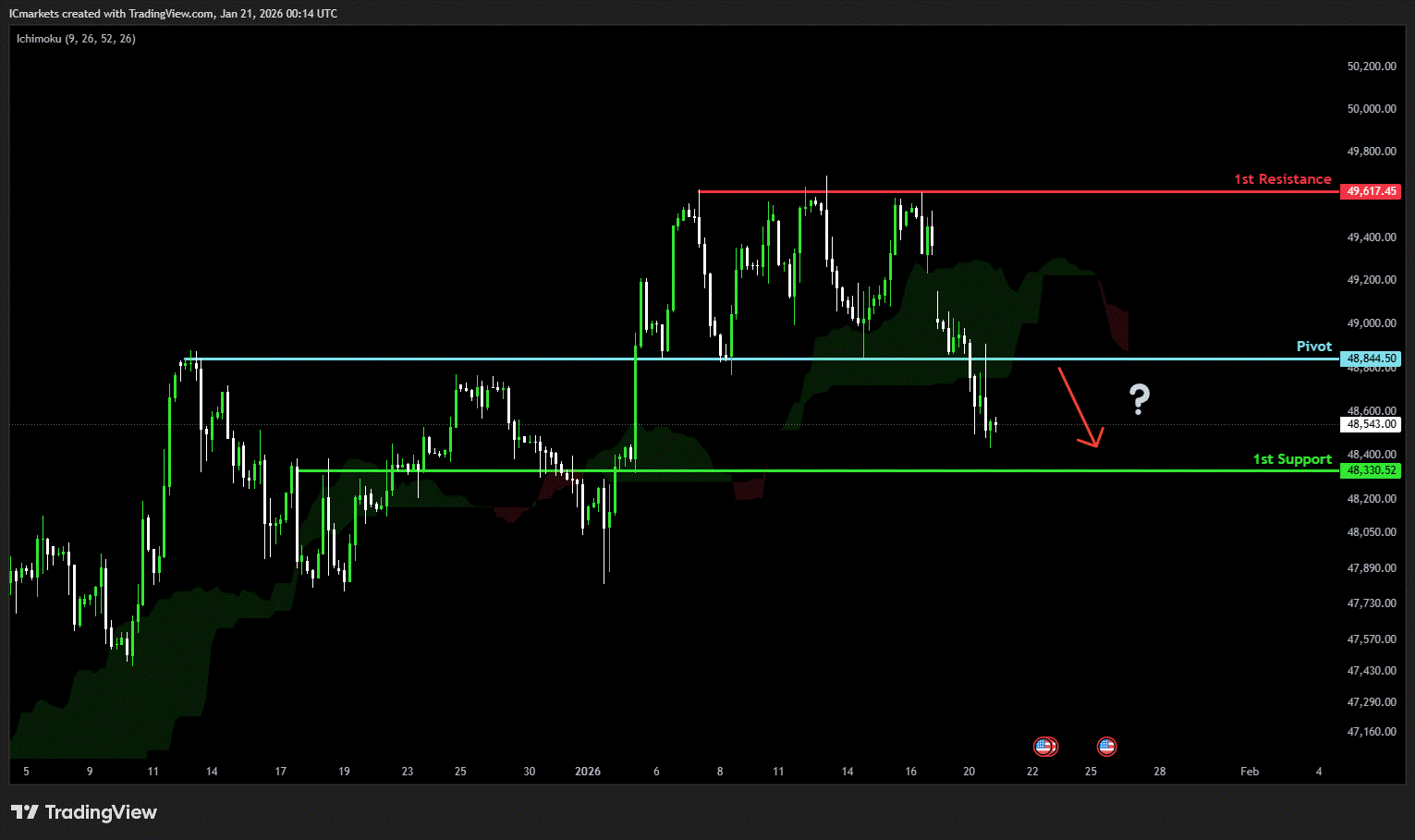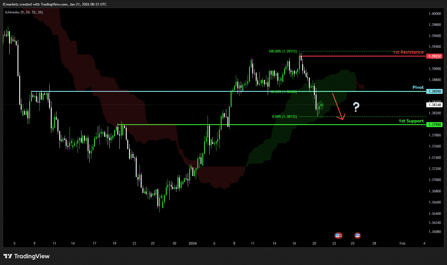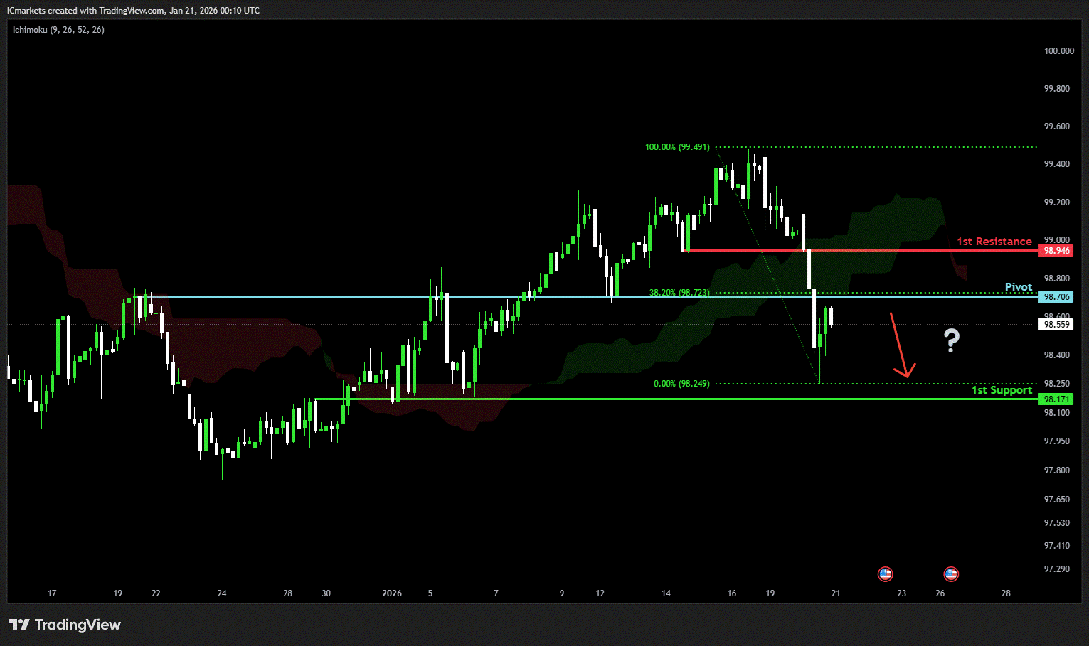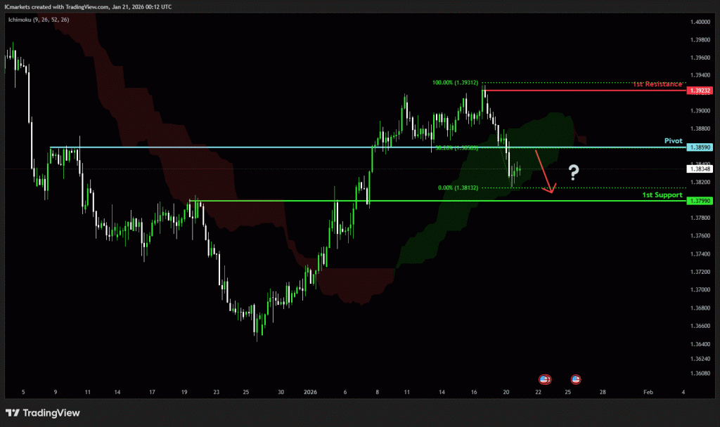 The price could see a short-term pullback toward the pivot before continuing its bearish move down toward the 1st support.