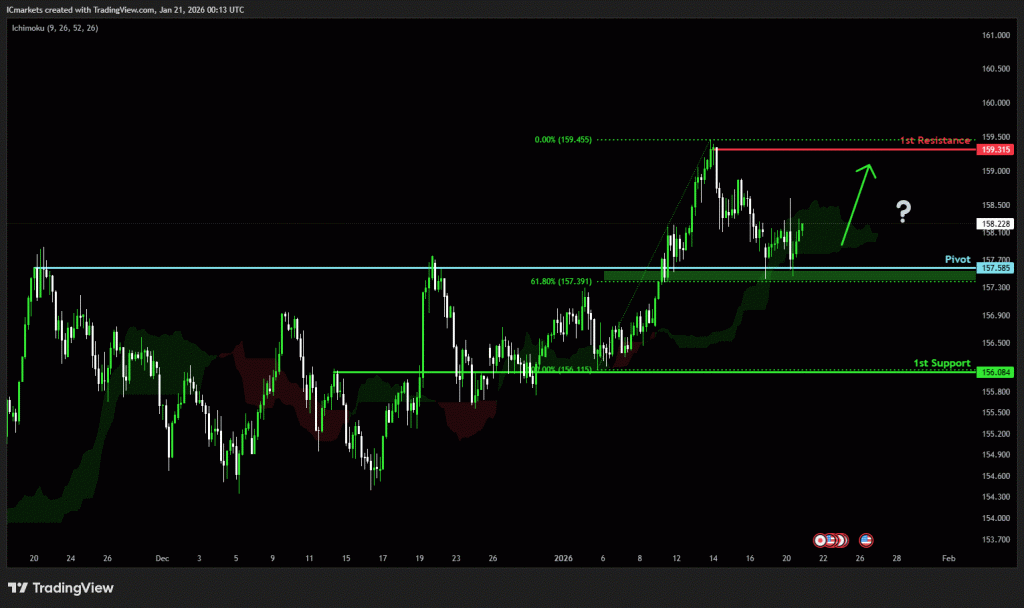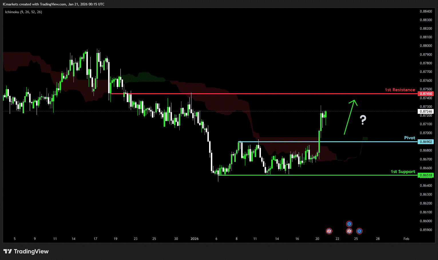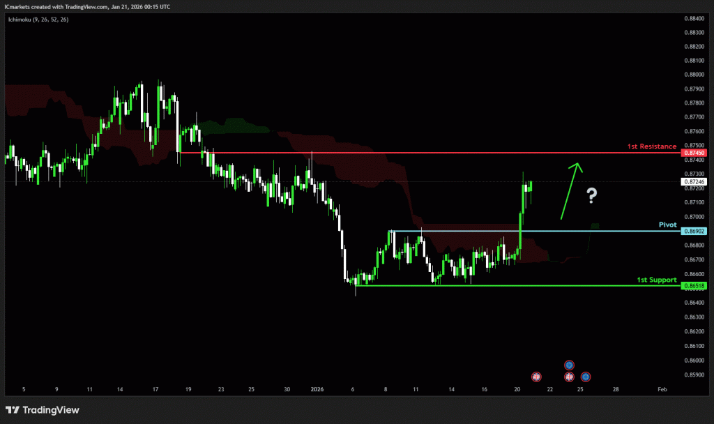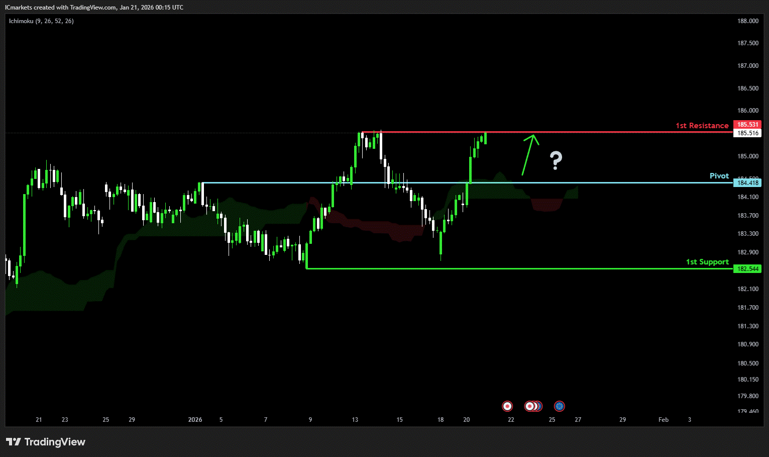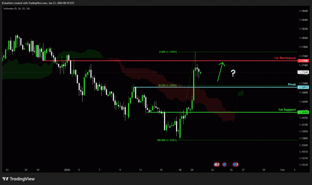 The price could see a short-term pullback toward the pivot before continuing its bullish move toward the 1st resistance