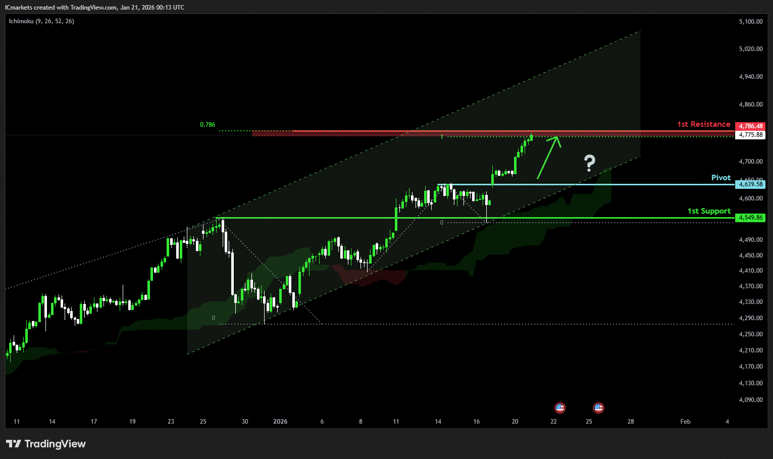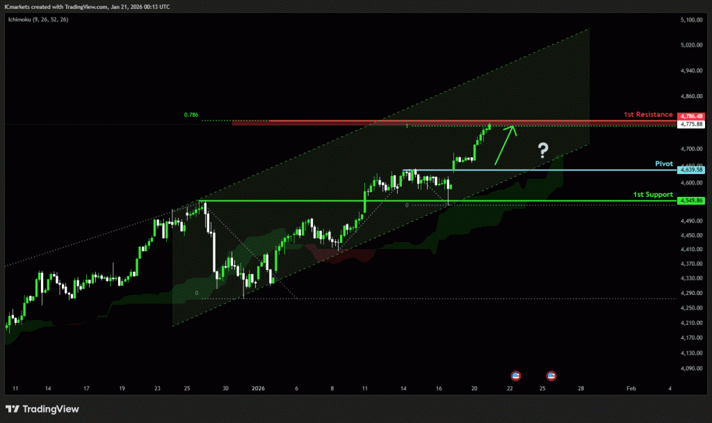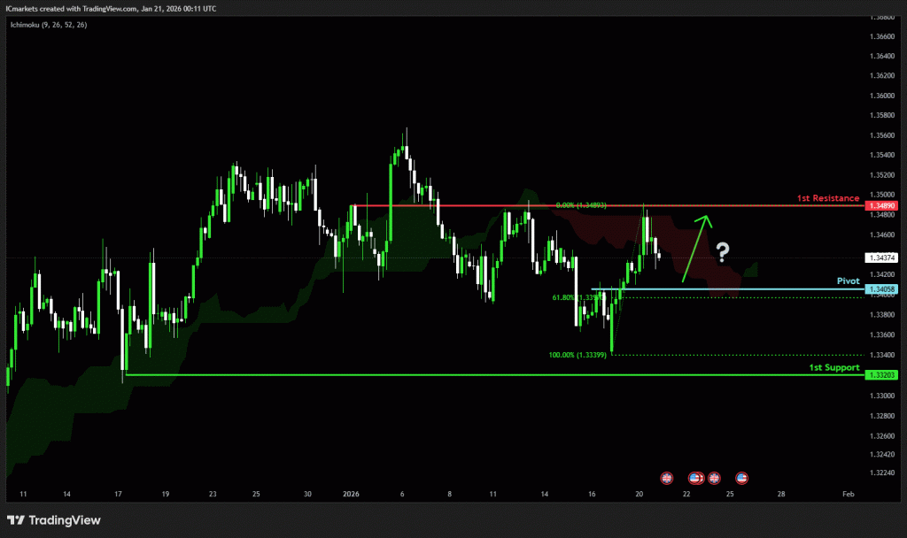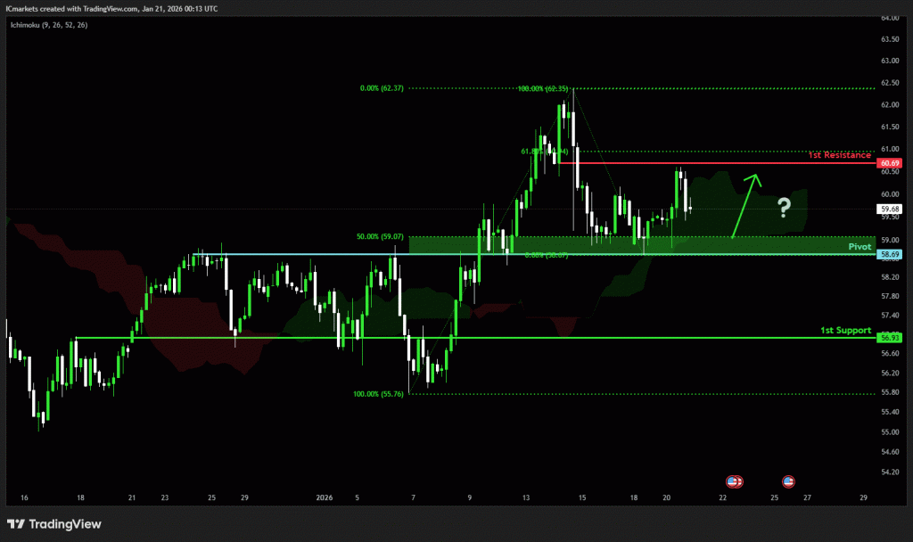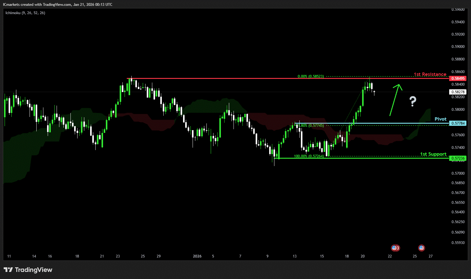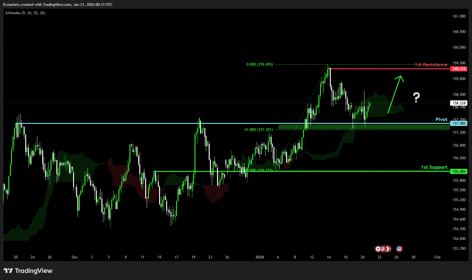 The price could see a short-term pullback toward the pivot before continuing its bullish move toward the 1st resistance