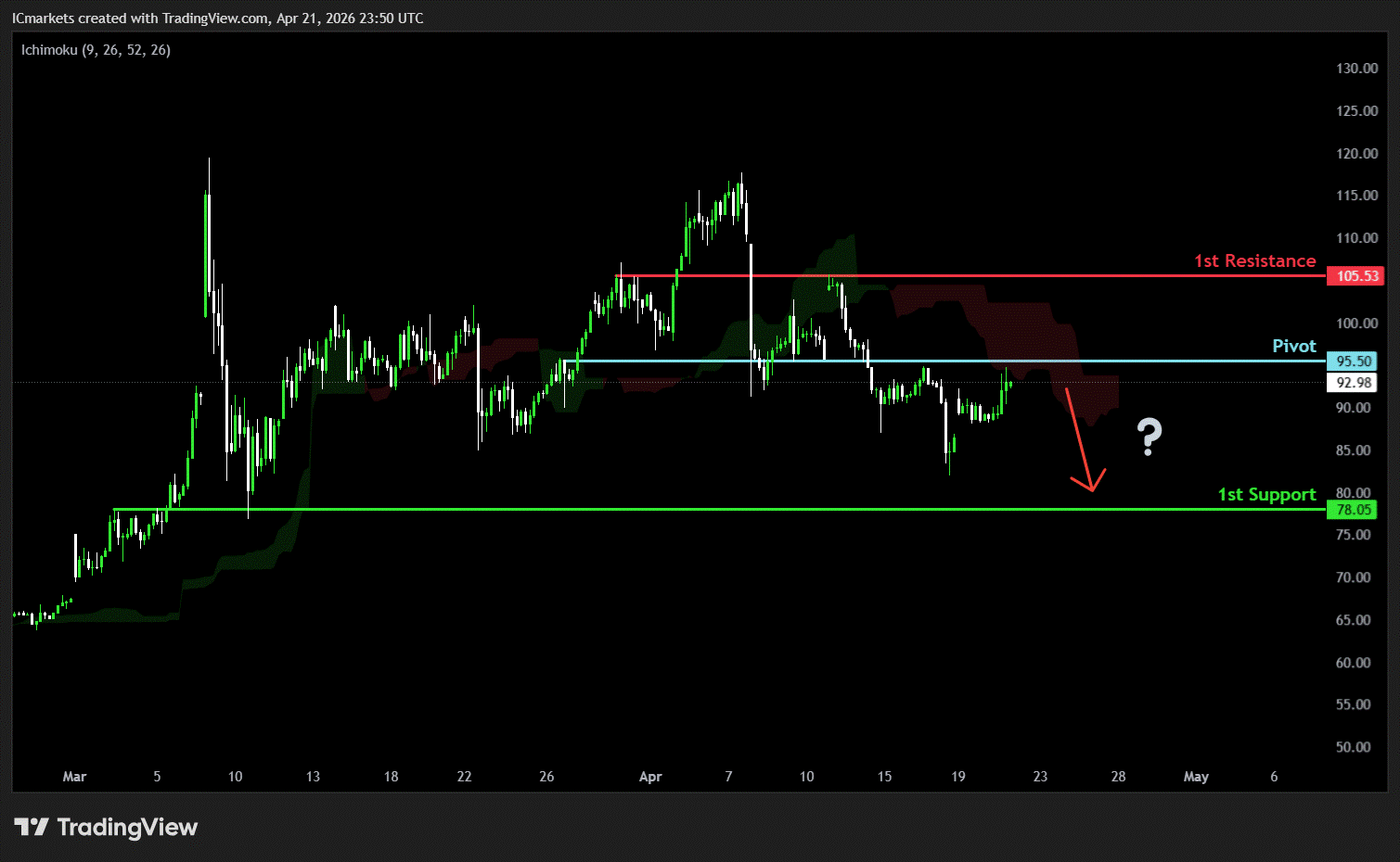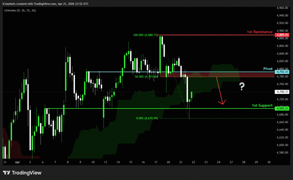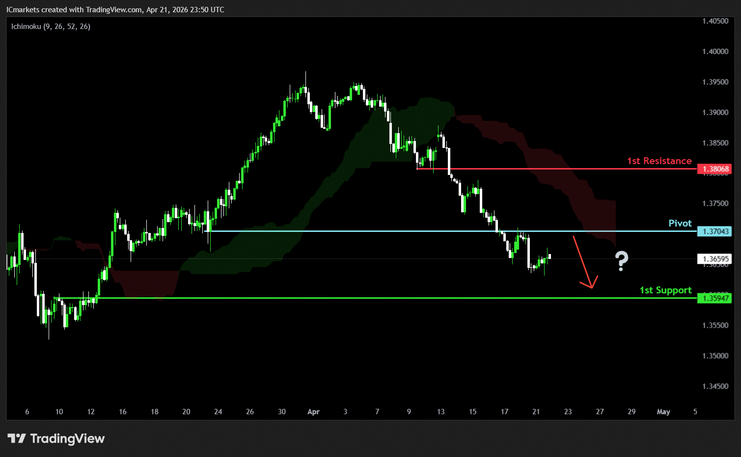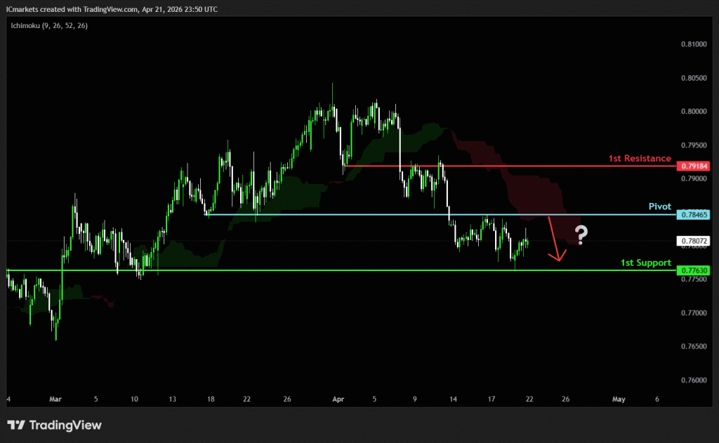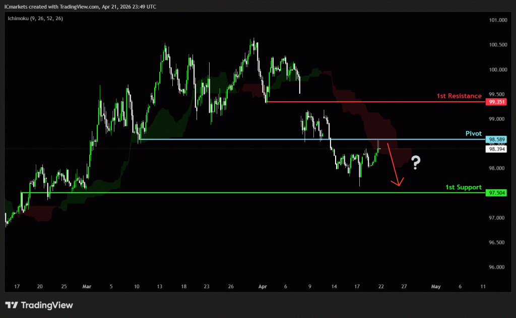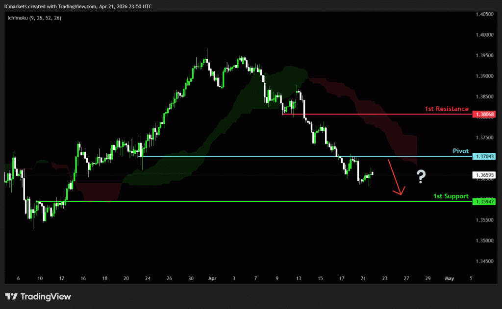 The price could see a short-term pullback toward the pivot before continuing its bearish move down toward the 1st support.