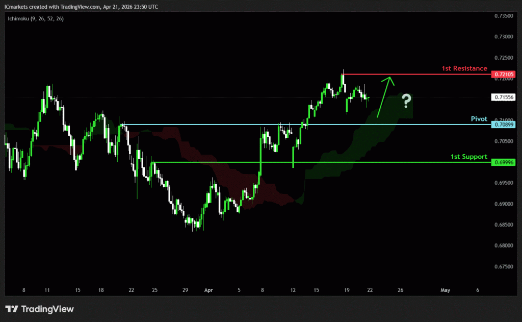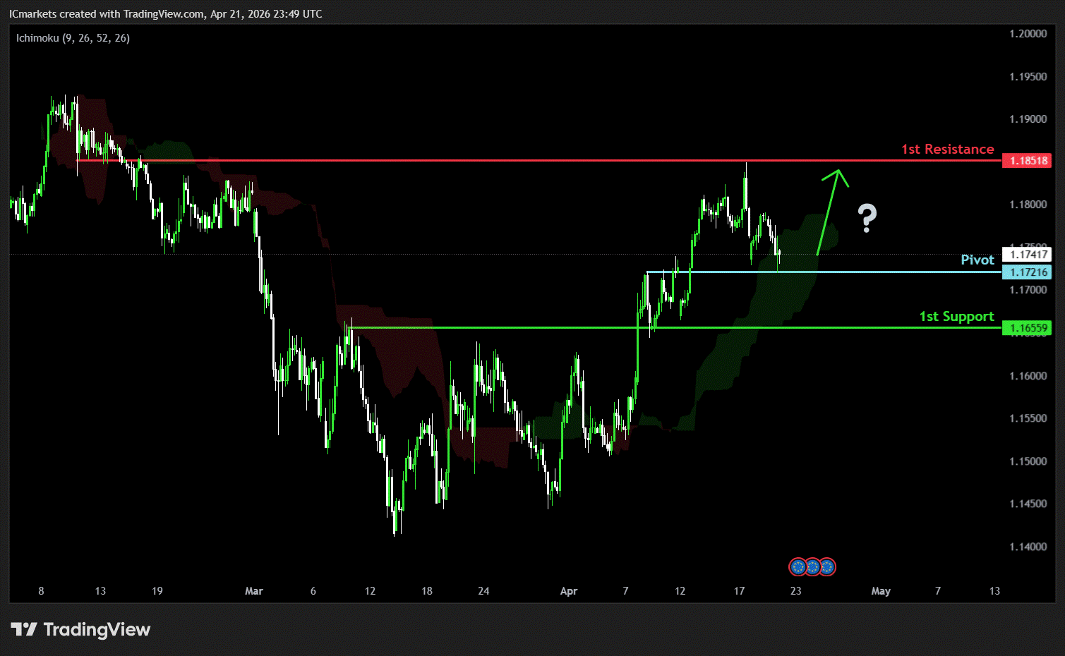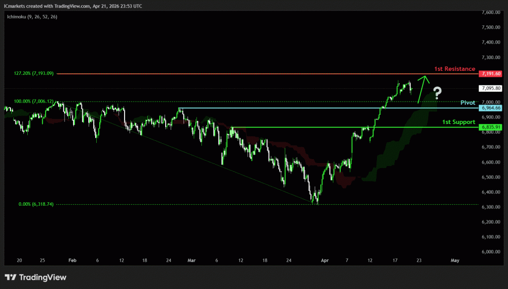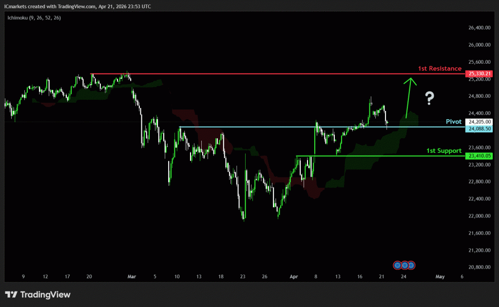 The price could see a short-term pullback toward the pivot before rising again toward the 1st resistance.
