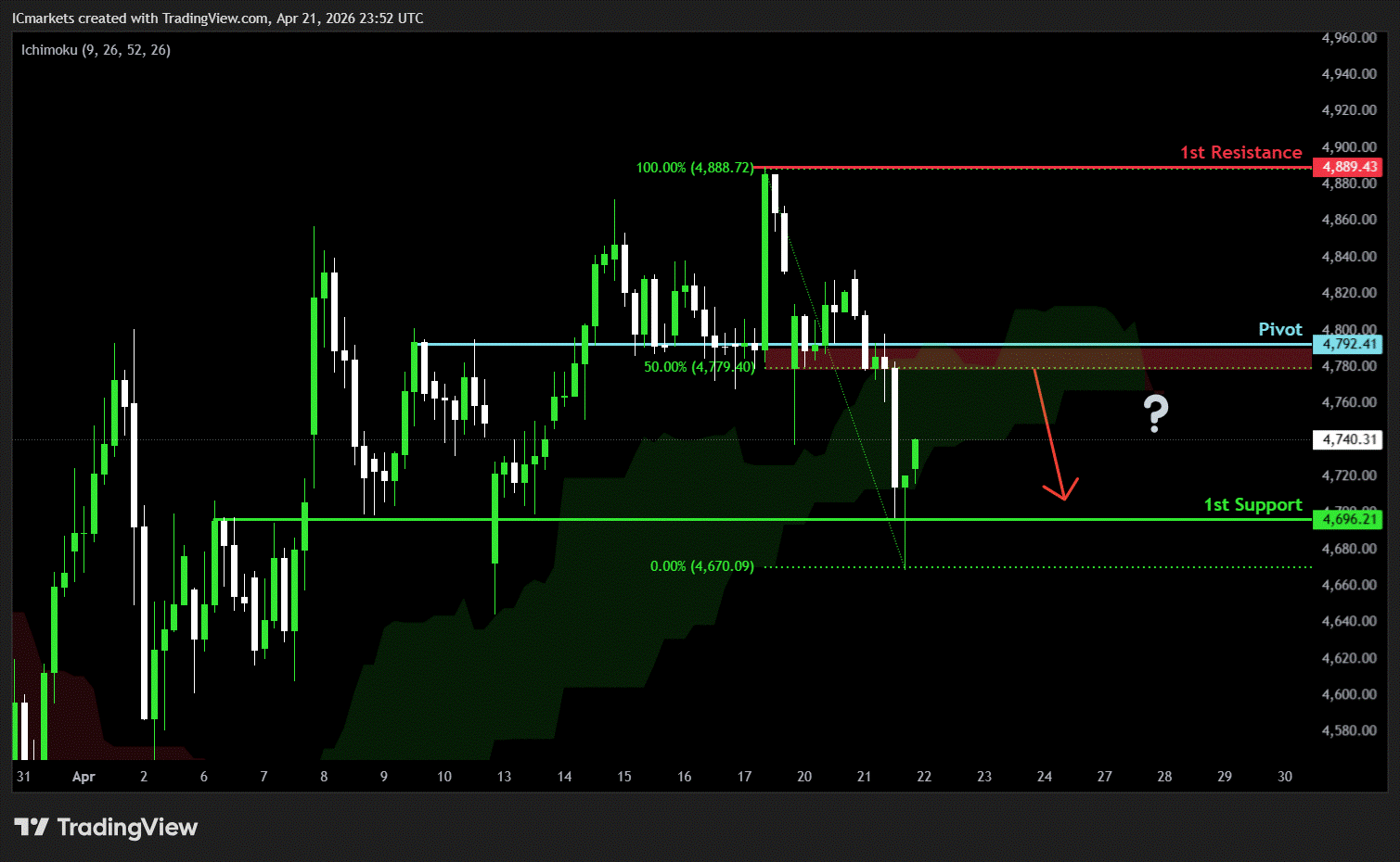 1st support: 4,696.21