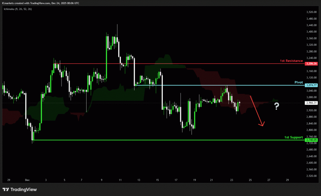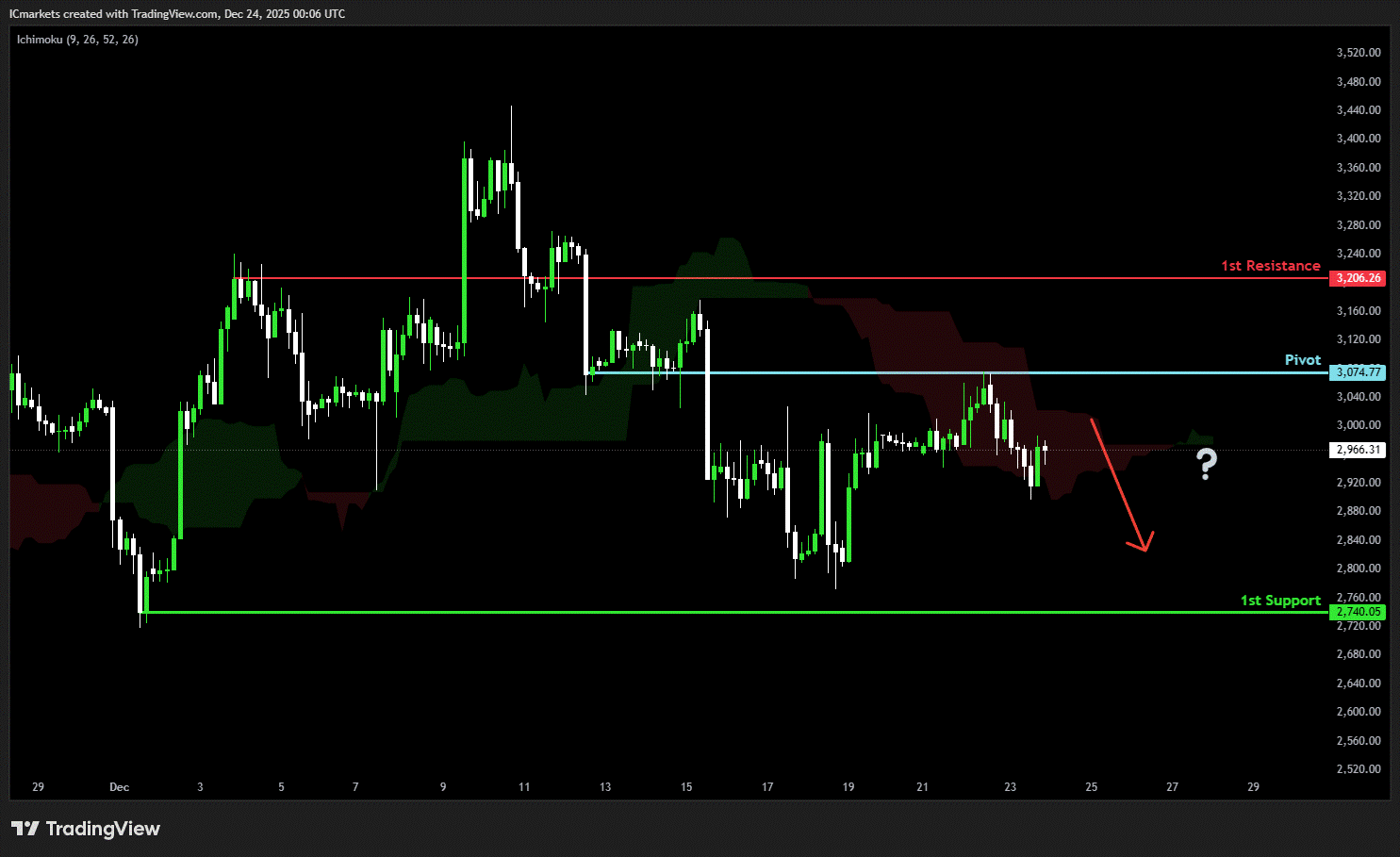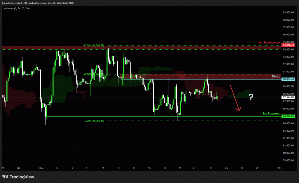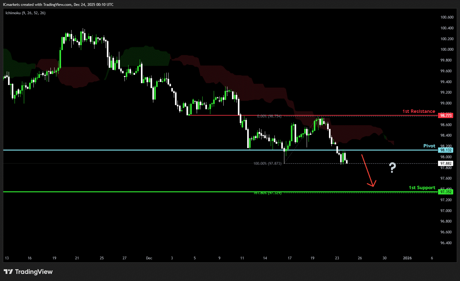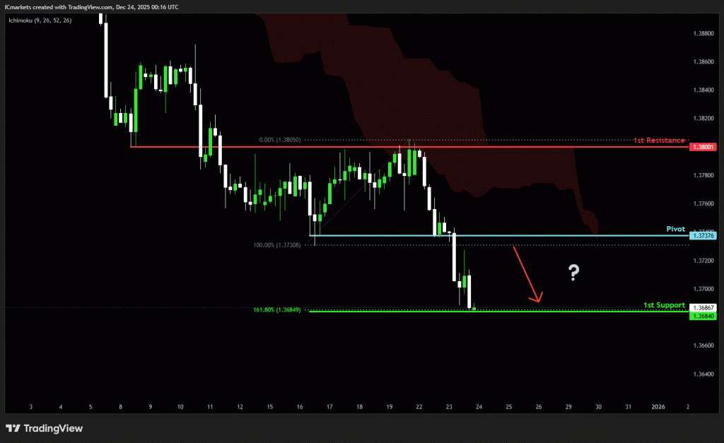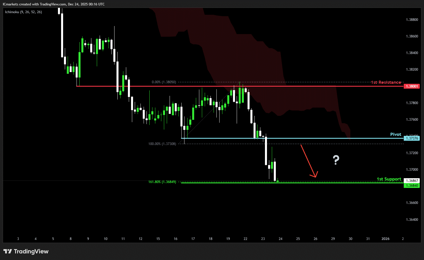 The price could see a short-term pullback toward the pivot before continuing its bearish move down toward the 1st support.