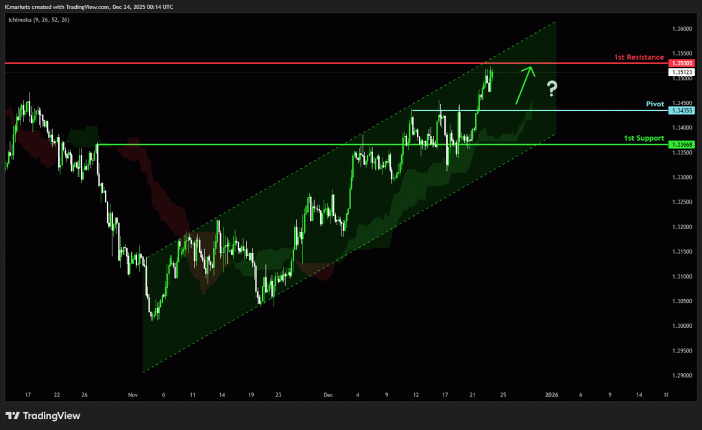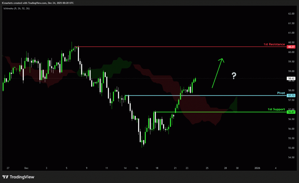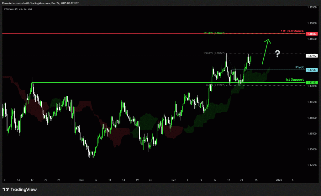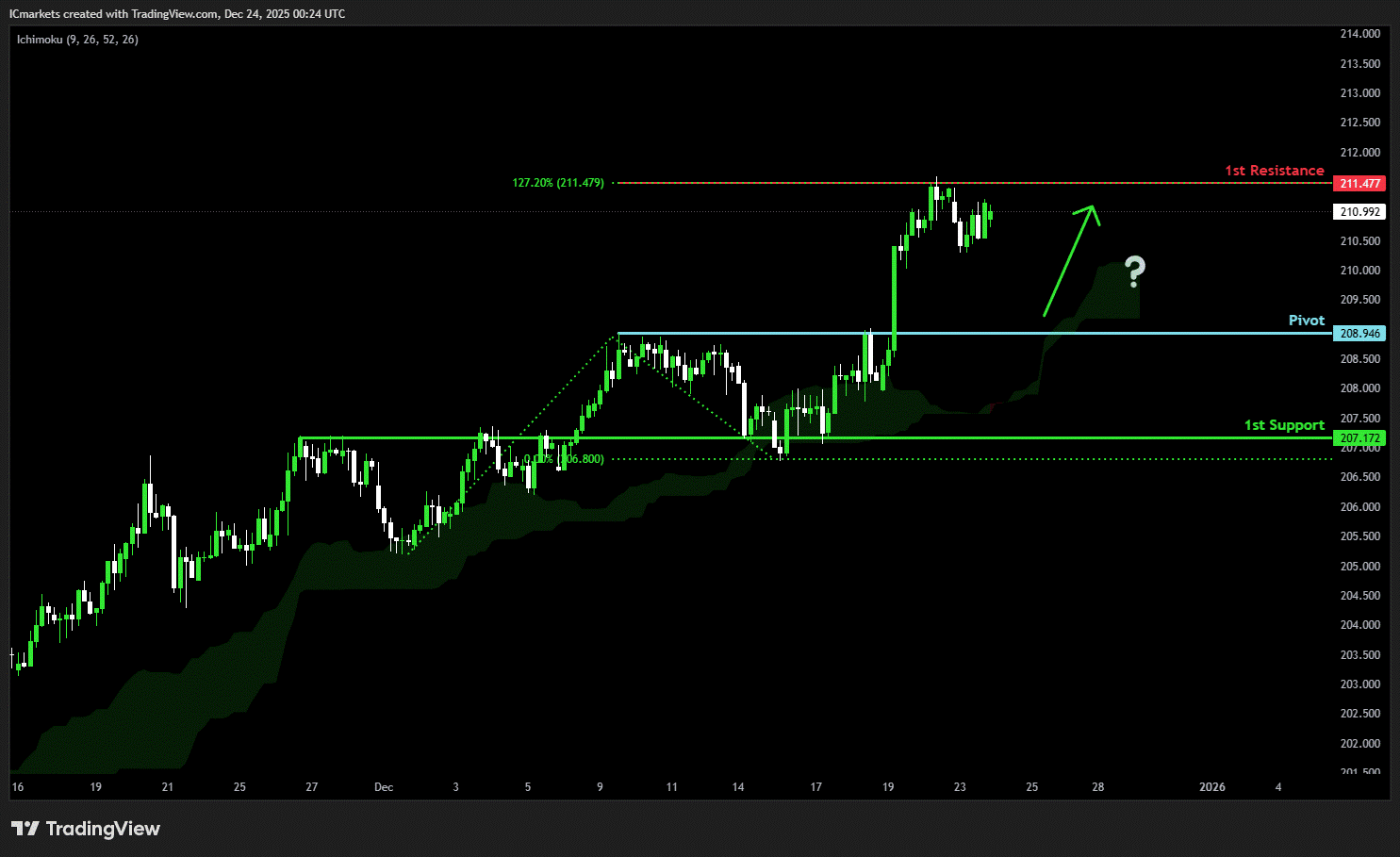 The price could see a short-term pullback toward the pivot before rising again toward the 1st resistance.