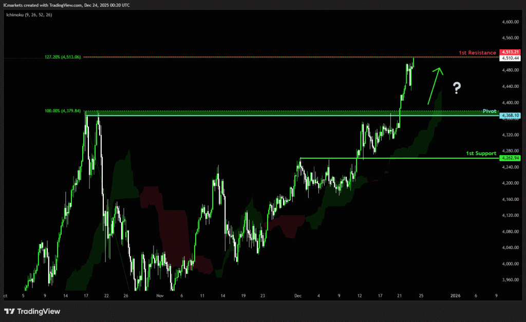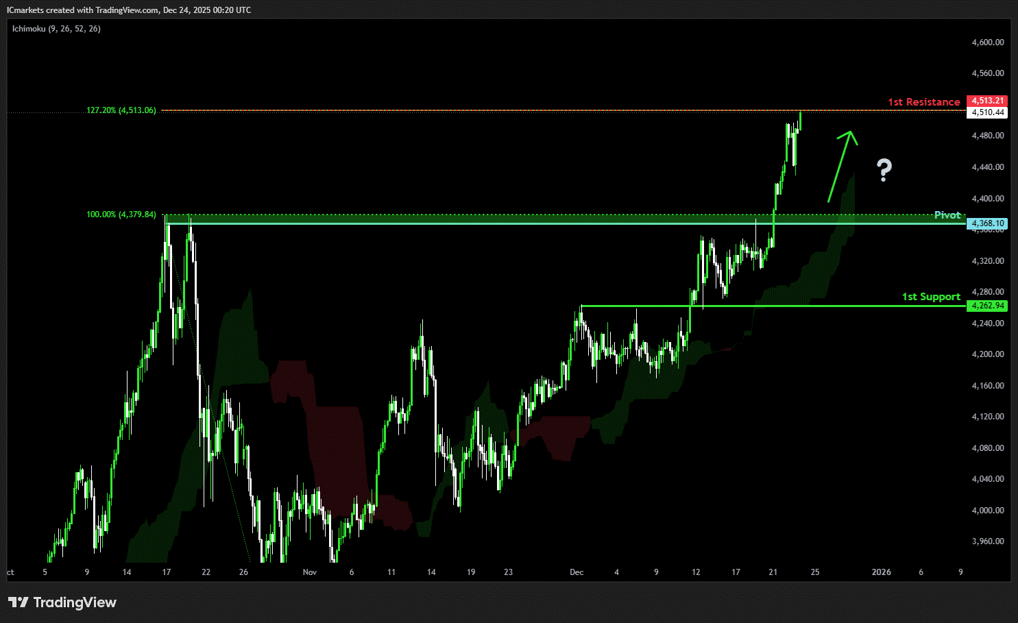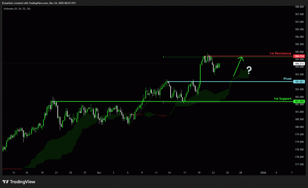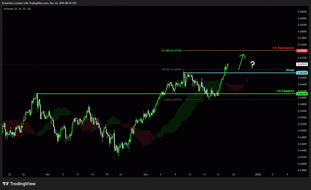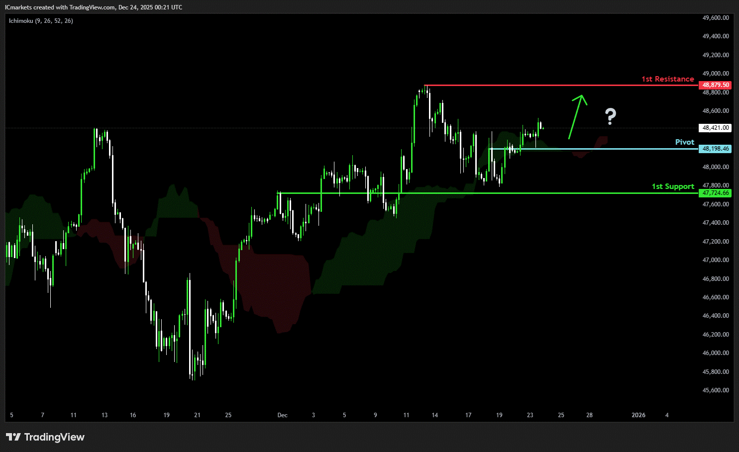 The price could see a short-term pullback toward the pivot before rising again toward the 1st resistance.