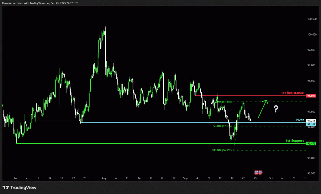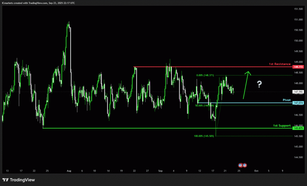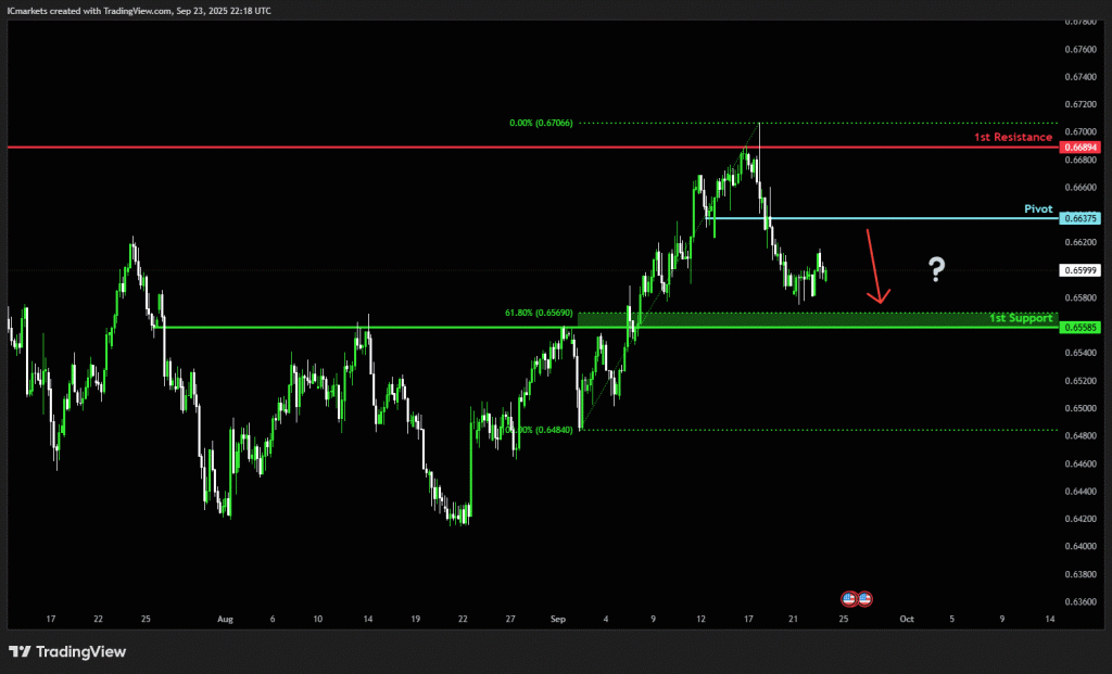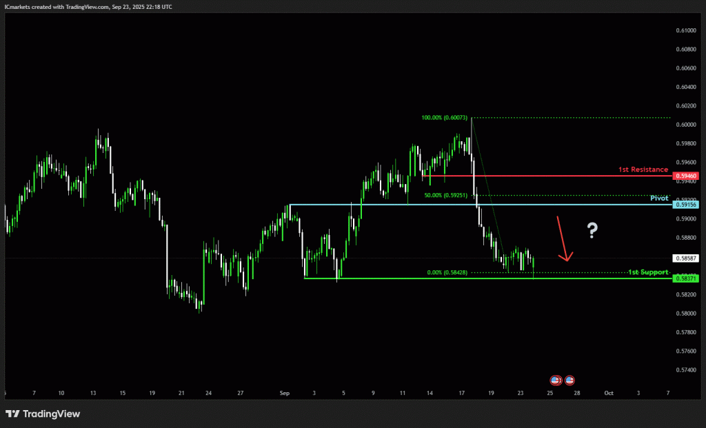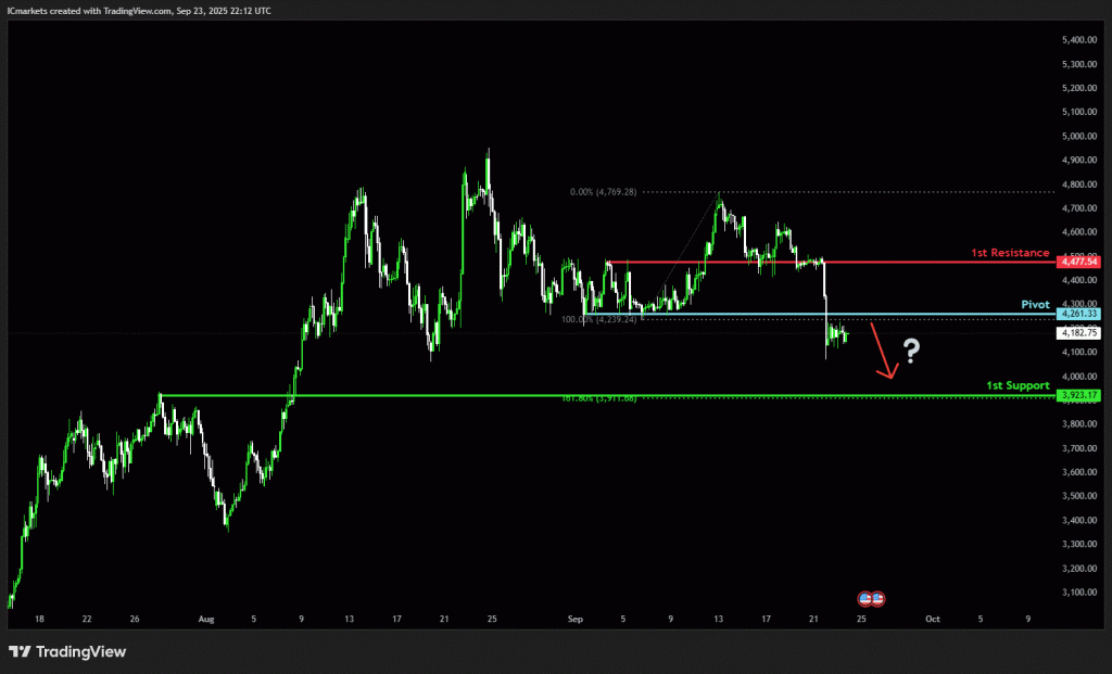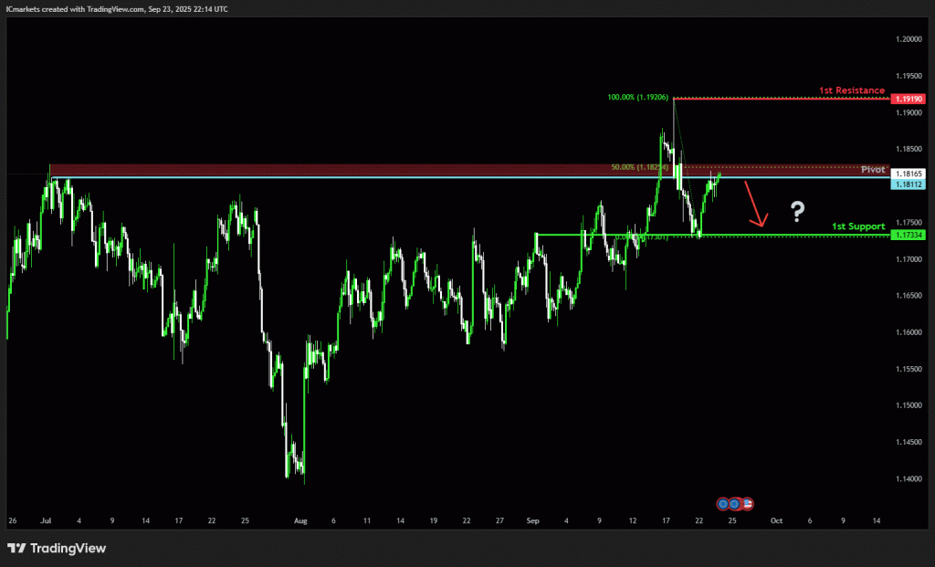 The price could see a short-term pullback toward the pivot before continuing its bearish move down toward the 1st support.