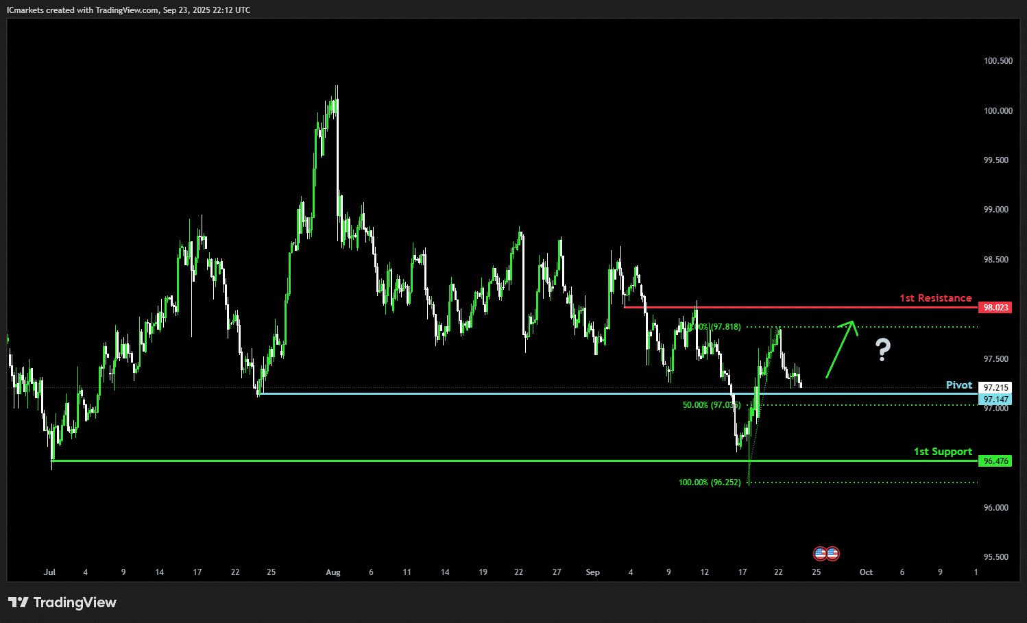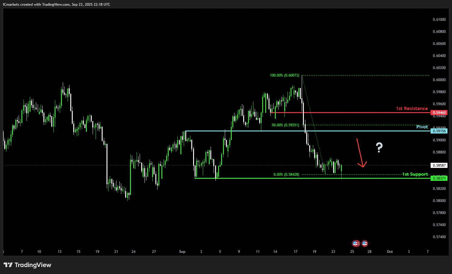 The price could see a short-term pullback toward the pivot before continuing its bearish move down toward the 1st support.