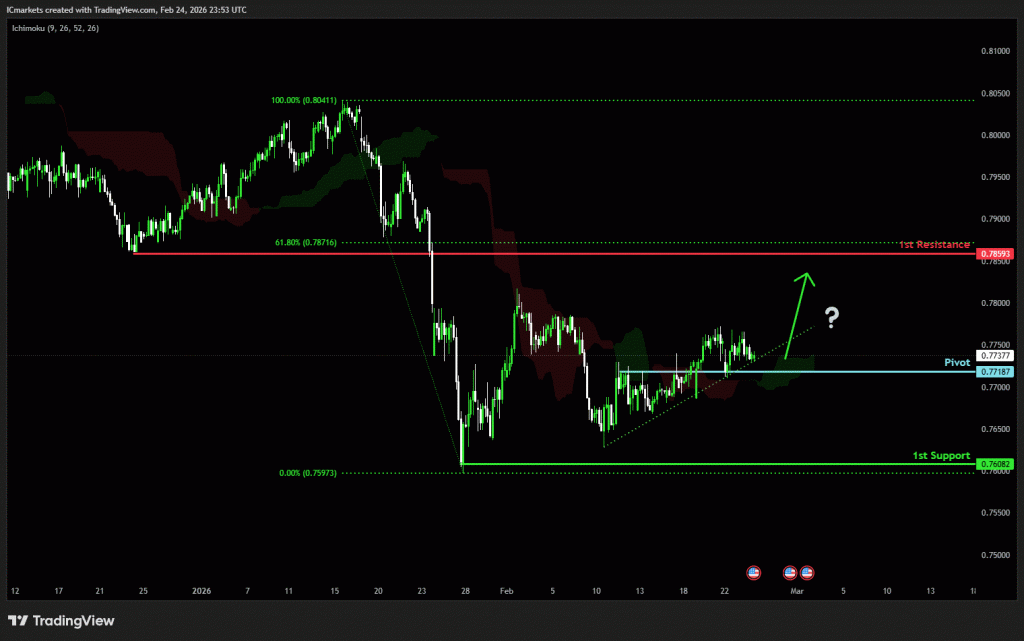 The price could see a short-term pullback toward the pivot before rising again toward the 1st resistance.