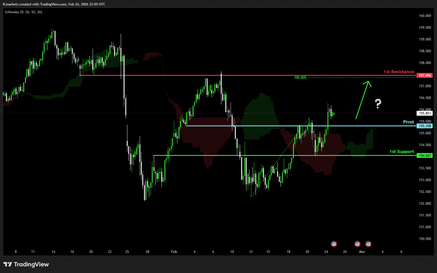 1st resistance: 157.45