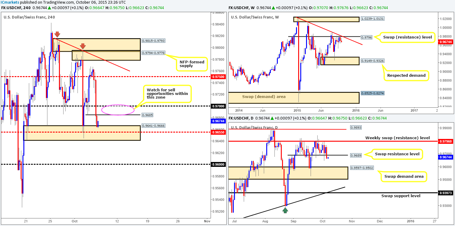 - Sells: 0.9685/0.9700 [Tentative – confirmation required] (Stop loss: dependent on where one confirms this area).